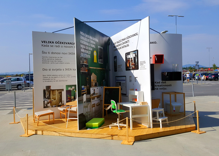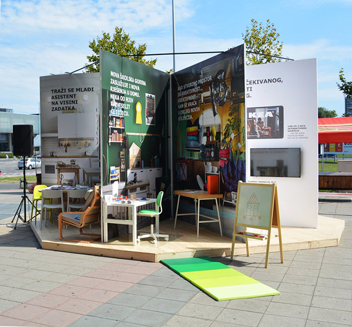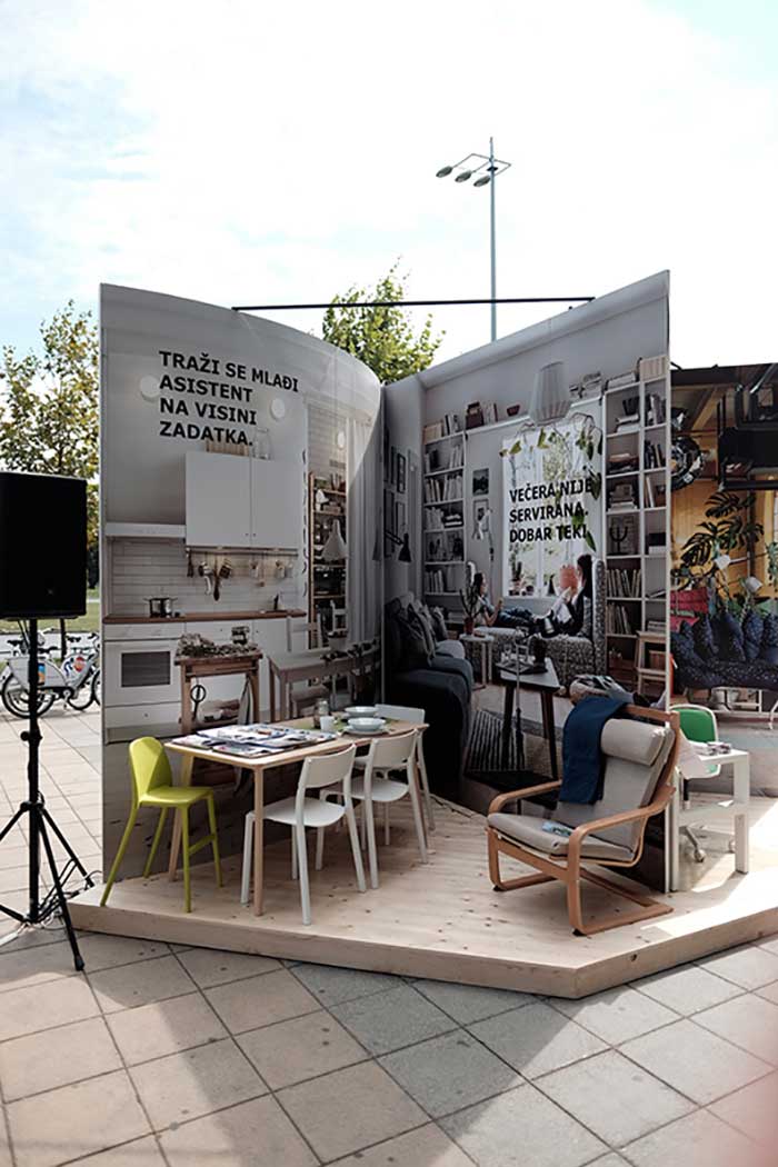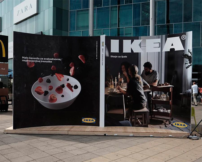 在克罗地亚,宜家也希望向大众大范围地展示推广其商品目录。最后,宜家以“大”为创意思路,以快闪店的形式创建了一个巨大的目录,并将其放置在街道的中间,以便路过的每个人都可以看到小册子中的实际尺寸的产品。他们为消费者创造了独特的现场体验,使消费者能够“进入”其著名的商品目录中,以现场观察和测试其目录中的某些家具产品。