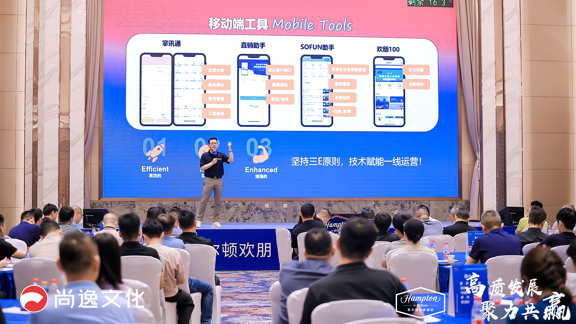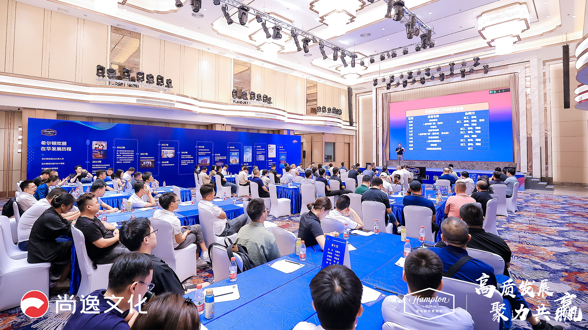 我们深入了解了希尔顿欢朋酒店的需求和目标,以确保活动与他们的品牌理念和价值观相契合。在主题确定后,我们精心策划了活动的内容和流程,确保能够有效传达“高质发展,聚力共赢”的信息。 我们负责场地选择、布置和装饰,以创造一个令人愉悦和专业的氛围。我们安排了讲师和培训课程,确保与会者能够获得有价值的知识和信息。同时,我们还协调了所有与会者的日程安排,以确保活动的顺利进行。通过我们的专业策划和精心执行,这次施工总包及顾问培训大会不仅成功地传达了“高质发展,聚力共赢”的主题,还为与会者提供了宝贵的学习和交流机会。我们感到自豪能够为希尔顿欢朋酒店打造如此成功的活动,期待未来能够继续合作,共同创造更多精彩的活动体验。