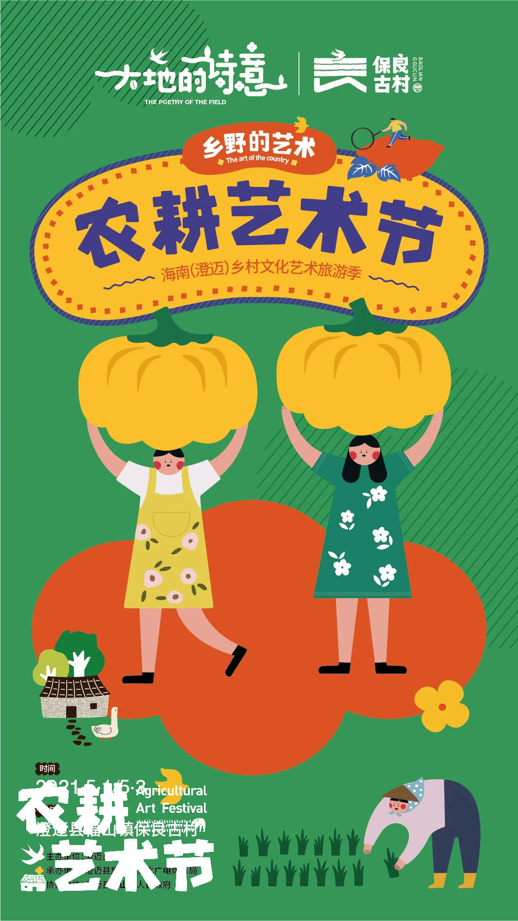 “保良古村农耕艺术节”系列活动以澄迈乡村文化为核心,深挖澄迈乡土艺术,围绕乡村农耕文化为主题通,以“乡土”和“艺术”碰撞的形式,将乡土韵味和农文旅融合发展,让游客身临其境般体验亲子农耕互动的乐趣和意义,感受农耕文化的力量。此次艺术节开展开幕式、咖啡农夫体验、竹篓绘画大赛 、乡村音乐会 、稻田奇妙夜、农耕市集六大主题活动,同时延伸出“稻田奇妙夜两天一晚短途游”、“乡野的艺术两天一晚短途游”、“农耕的艺术一日游”三条精品旅游线路,将福山镇和桥头镇旅游资源串联整合,打造具有澄迈特色的旅游产品,带动澄迈假期热度。