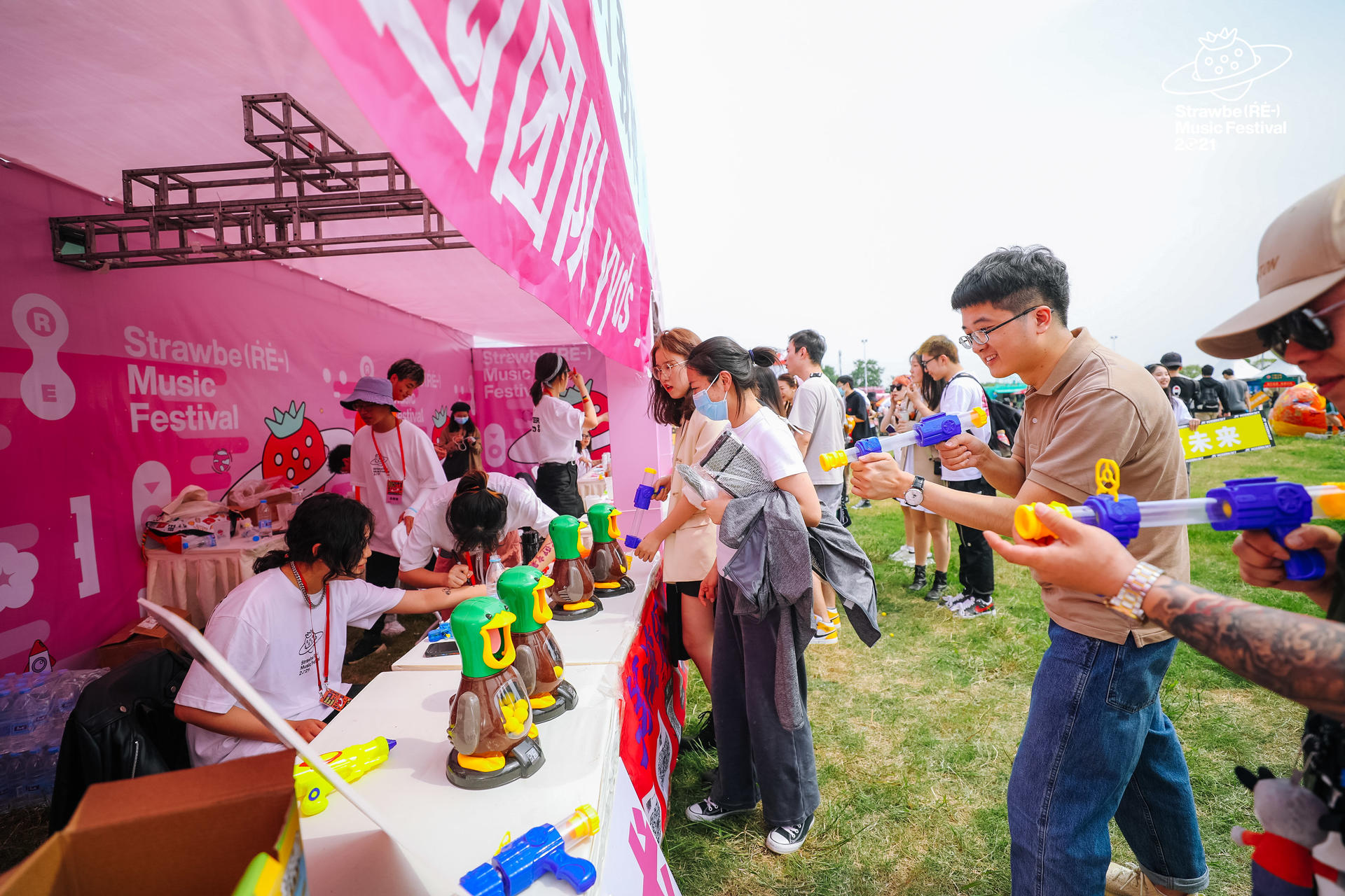 时隔五年,草莓星球再度回归南京,新裤子、痛仰、重塑雕像的权利、五条人、马赛克、海龟先生、陈粒、曹方等24组乐队和音乐人在两天里悉数登场,顶尖的阵容,堪称过年。LADFOOD为南京草莓在地内容专区主题「以鸭还鸭」打造主视觉,新奇又迷幻,潮流又怪诞,巨幅的画面成为现场热门的打卡点。长10米宽3米的LED屏打造了沉浸式互动体验空间,在这里你可以化身一颗草莓,或是隐匿成一条曲线。