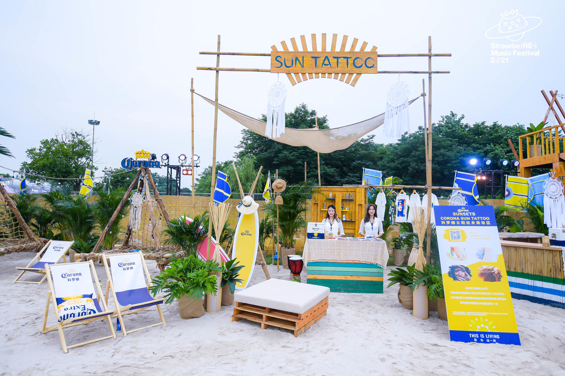 越是短暂越要快乐,在这个夏天尽情摇摆,不管在哪里,都是你的舞台,一起从科罗娜的椰林沙滩开始,坐在沙滩上听歌饮酒,巾幡飘动日落灯打在身上,身边充满异域气氛,开启一整天chill气氛。在音乐之余,周边也汇聚了众多年轻生活方式板块内容,向乐迷提供了N+1的音乐节的休闲方式,除了观看草莓舞台和日落舞台,乐迷也体验到其它充满艺术的品牌空间,席地坐在草坪上,在人来人往的现场收获先锋体验:一边观看乐队现场,一边戴着耳机享受舒适降噪展现的独立自我的空间。