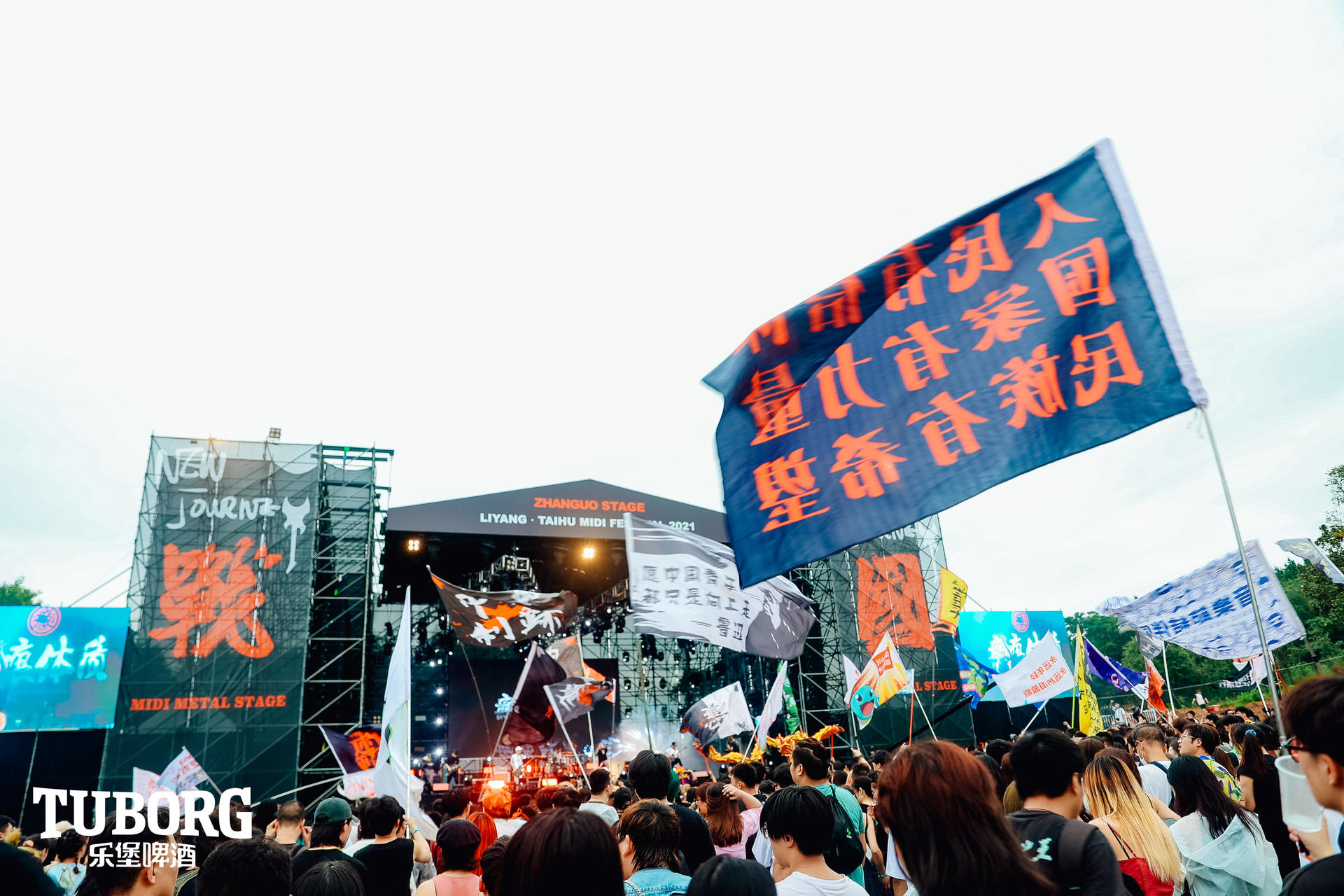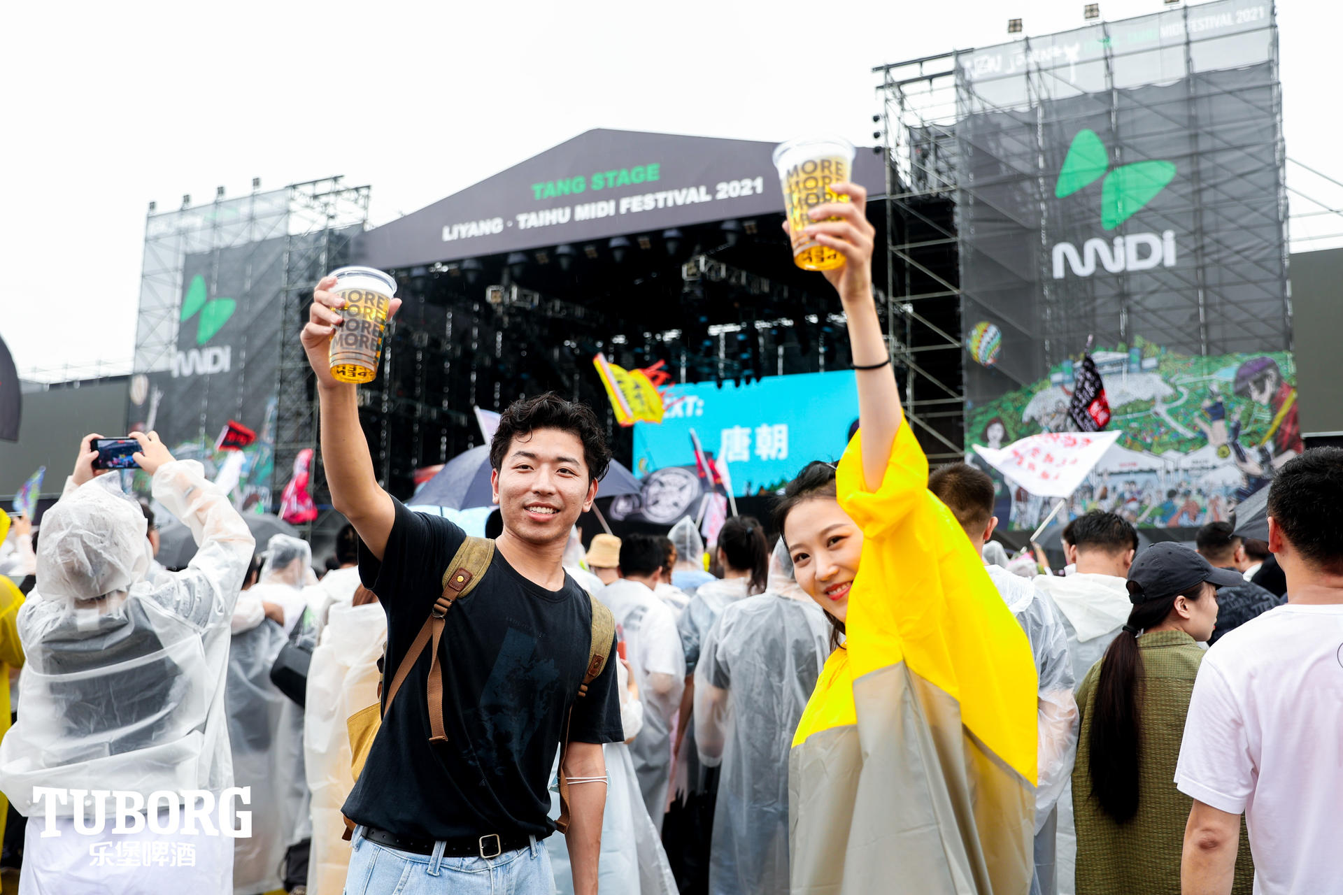 「放开玩 就现在」2021溧阳·太湖迷笛音乐节是历年迷笛音乐节规模最大的一次,现场有五个舞台,唐是经典摇滚乐,集结了崔健、二手玫瑰、痛仰等摇滚大咖,战国舞台是迷笛最传统、最火爆的,全国有很多重型摇滚乐迷为这个舞台而来。不亲临现场,你很难体会音乐节上灵动欢脱的“野”,这些乐迷满身是泥却满心热爱。一件件雨衣、一根根沾着雨水的发丝、一双双“奇形怪状”的泥鞋、一个个极具创意的“集装箱”休息室给音乐节增添了许多别样的风景线。