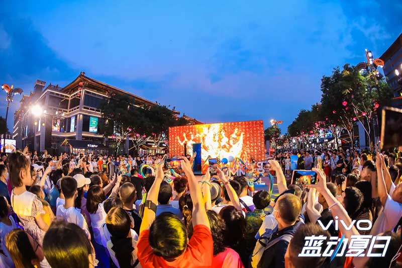 Vivo蓝动夏日嘉年华在热辣的季节正式启动,神秘盒子空降西安大唐不夜城,给夏日的夜晚带来的神秘和期待。简单的倒计时画面和黑科技互动,冰蓝色的外观,霓虹光充斥四周,留足了悬念,让人充满好奇。在蓝色盒子前,对着喇叭,喊出你的心愿,Jovi智能语音会将你的心愿转化文字,投放在蓝色盒子的外置屏幕上,愿望被看到,未来被实现。蓝色盒子内有网红装置,用vivo双旗舰手机拍摄,蓝色的光影隐隐约约,随手一拍就是大片。内部还设置了互动箱,参与互动,精美礼品等你来拿。