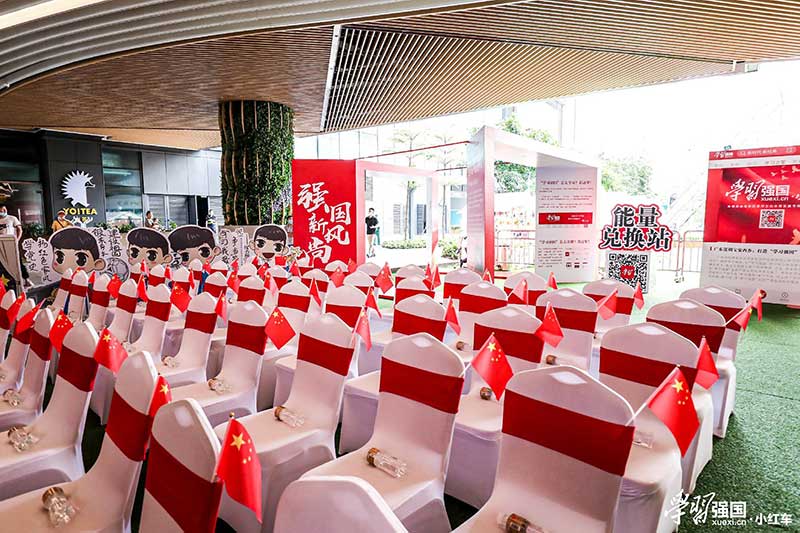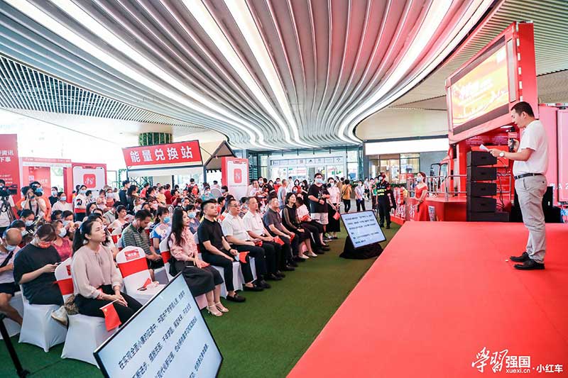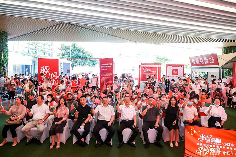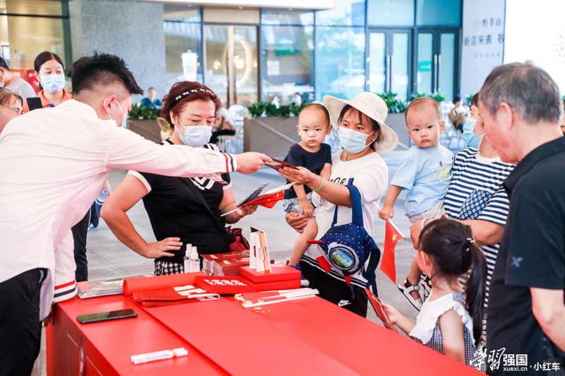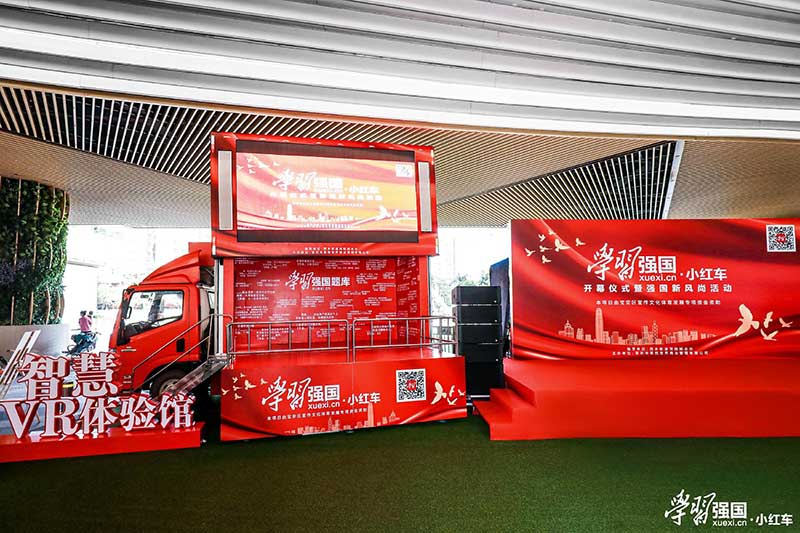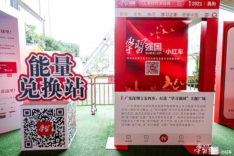 在西乡街道大仟里商场外,“学习强国”小红车开幕式暨强国新风尚活动正式启动,历时半年精心筹划打造的“学习强国”小红车也闪亮登场。“学习强国”小红车以流动的中国红视觉为主设计形象,党建小红车为载体,” 学习强国 “” 党建文化 ” 为主要普及内容,围绕 ” 学习强国 ” 小红车 IP 形象,活动现场设置了 ” 强国新风尚线下快闪店 “” 强国能量兑换站 ” 及 ” 智慧 AR 体验馆 ” 等沉浸式、场景化学习体验区域。