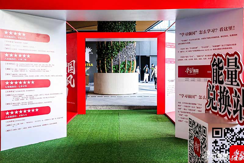 活动一经启幕就吸引了现场众多市民前来体验打卡,有的市民迫不及待走进 ” 智慧 AR 体验馆 ” 亲身体验科技赋能的党建文化新风尚;有的按照现场文图索引聚精会神的研究 ” 学习强国 APP” 的正确打开和学习方式;更有市民主动下载 ” 学习强国 “APP,现场开始学习积分参与能量兑换站精美礼品兑换活动。