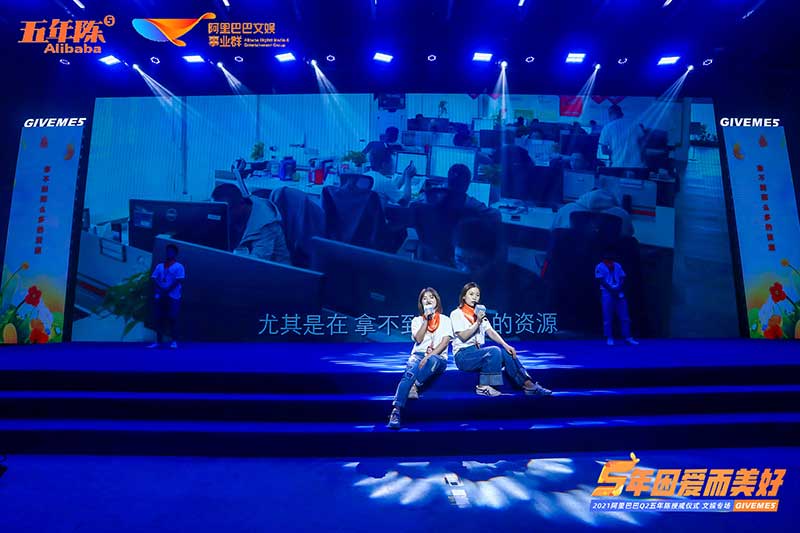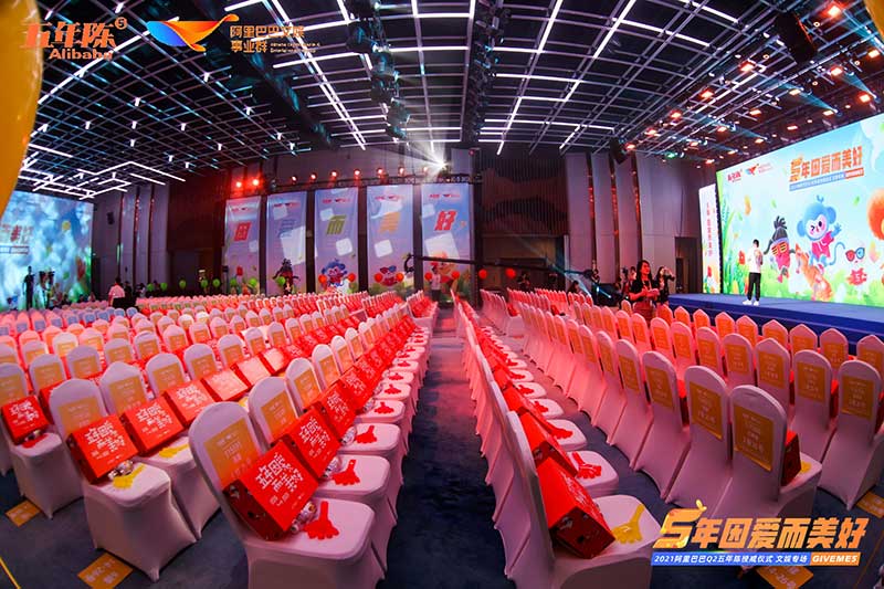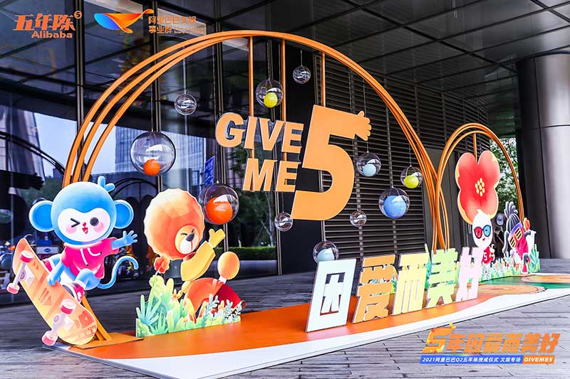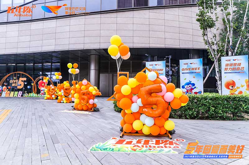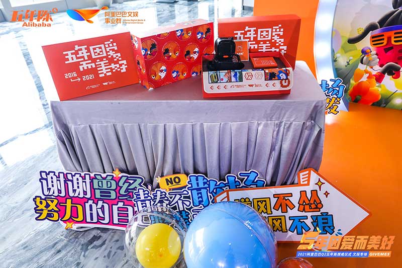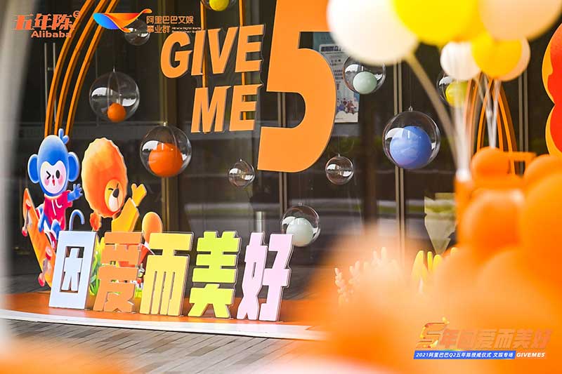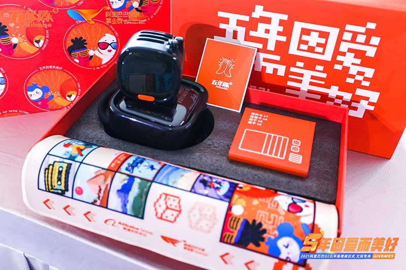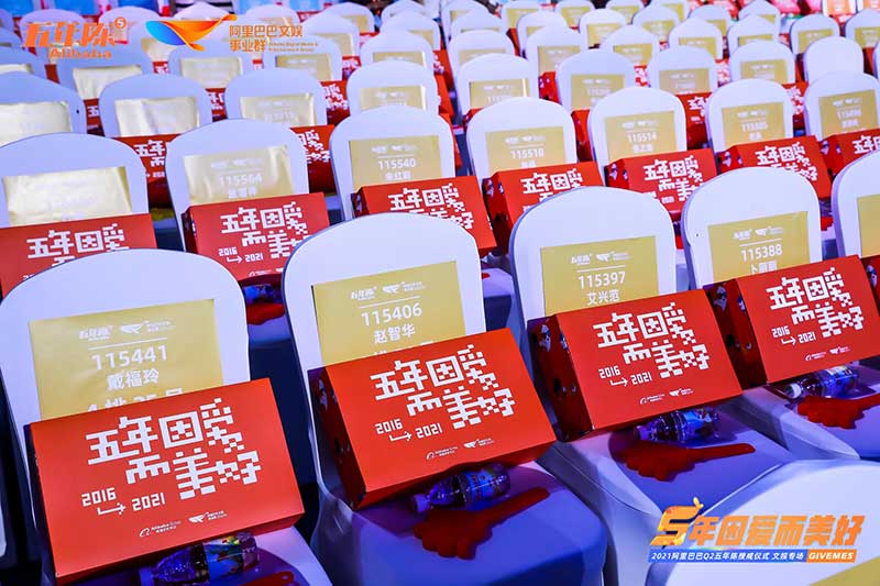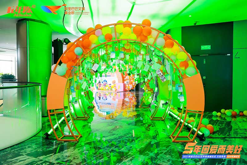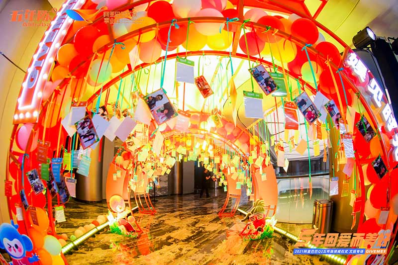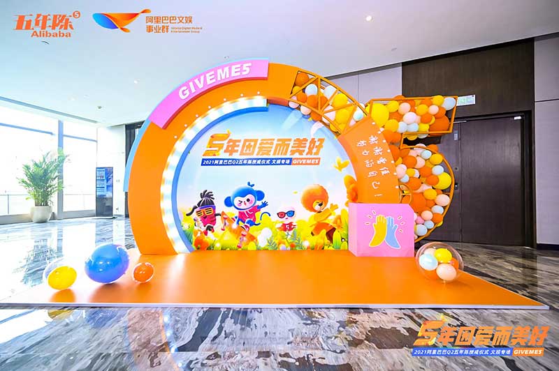 阿里人常说, “一年香,三年醇,五年陈”,我们用酒来形容阿里员工在这里的成长,这就是年陈文化。满五年的阿里人,都会拿到一枚定制的白金戒指,它代表相信,也寓意传承。除了戒指以外,其他环节也颇有仪式感,进入内场,是阿里给每一位到场员工信封拼接的活动主题墙,信封上还用心的写上了员工的名字,签到领取五年陈定制丝巾后,即到主题墙前领取属于自己的信。进入主会场的通道不仅以“5”作为造型,里面也是大有玄机,是到场员工在阿里五年的照片布置而成,员工们纷纷找到自己的照片并惊喜合影。
