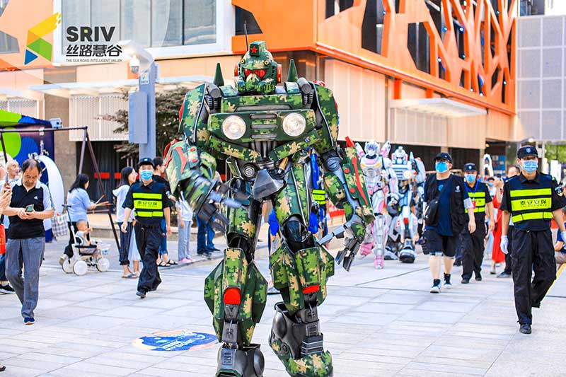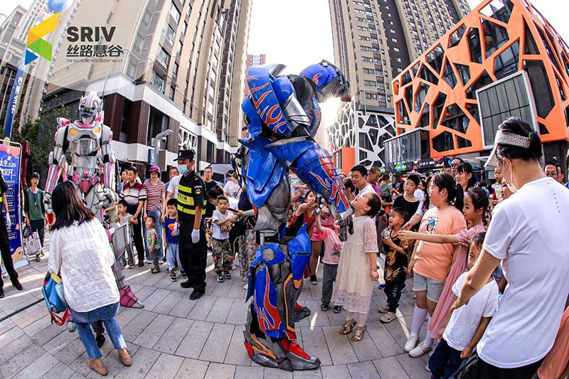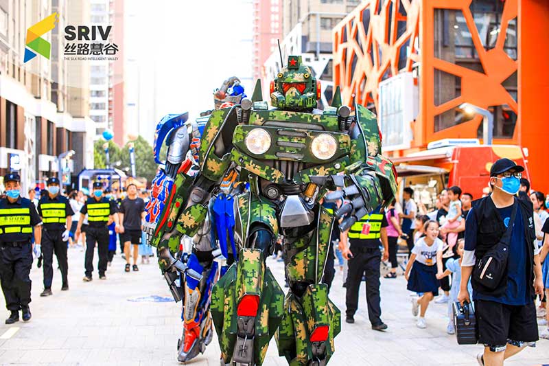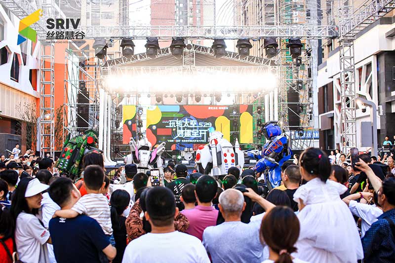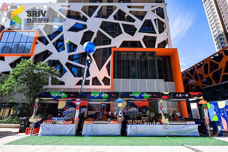 星际互动体验、民族乐队助兴、机甲骑士巡游、文创集市展览……“智空间慧生活”概念街区——丝路慧谷创业社区正式开街,航天基地再添新打卡地。在开街仪式上,知名乐队空降,现场开麦,爆梗频出,带来尖叫、爆笑的视听盛宴;璀璨的露天灯幕、时隐时现的星球灯,仿佛神秘莫测的浩瀚星河近在咫尺,浪漫氛围和科技感的双重加持,给市民带来新奇的星际互动体验;机甲骑士巡游互动表演,受到小观众热捧,互动惊喜连连。创业社区还设有星空集市和创意集市,各种美食汇集,创意商品琳琅满目,一派热闹景象。