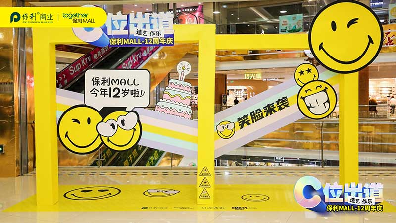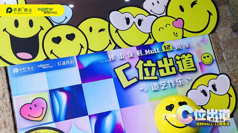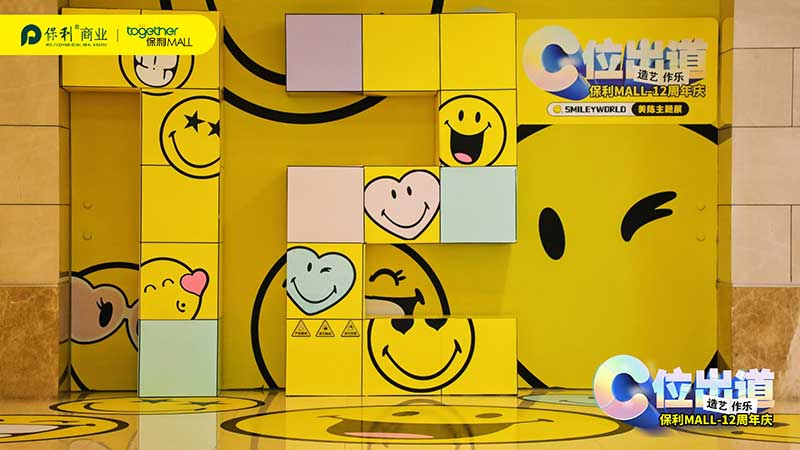 保利商业佛山城市公司旗下佛山保利MALL项目迎来十二周年 “C位出道·造艺作乐”庆生晚会。现场盛况空前,宾朋满座。为打破艺术与生活的界限,将当代艺术元素融入商业空间,佛山保利MALL联合国际大IP“SMILEY”打造“C位出道,造艺作乐”美陈主题展,旨在微笑传播正能量,分享快乐和积极的生活态度,重新点燃内心的温度和狂欢,用微笑传播力量,倡导快乐生活。
