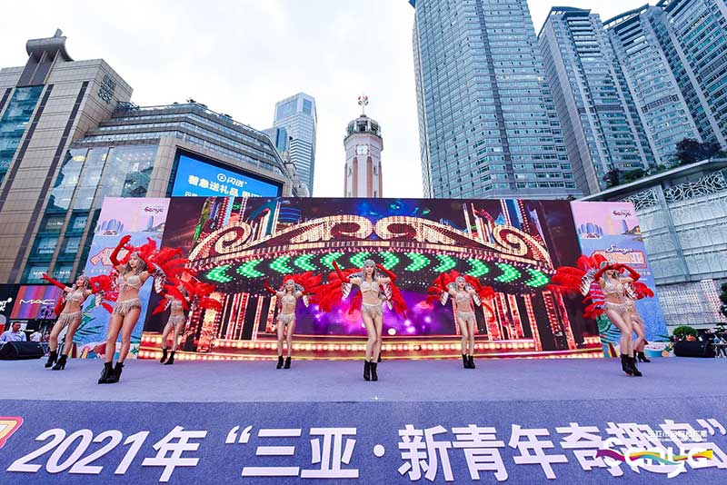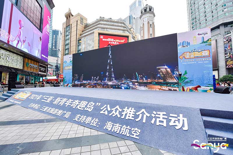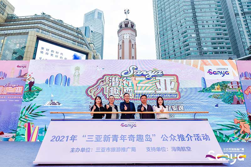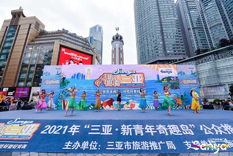 三亚市旅游推广局在重庆打卡地解放碑举办了2021“三亚·新青年奇趣岛”公众推介活动启动仪式,活动现场热辣的草裙舞、有趣的互动问答、诱人的奖品,吸引了众多市民、游客的参与。
