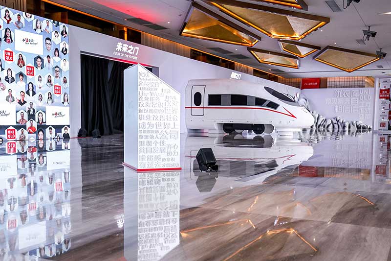 优衣库加速迅销号店长大会对过去一年的优秀店长进行了表彰,也对过去一年进行了回顾和对未来一年进行了展望。活动现场以动车头为主题元素,象征对未来业绩的渴望,鼓励所有员工积极应对,勇敢拼搏。