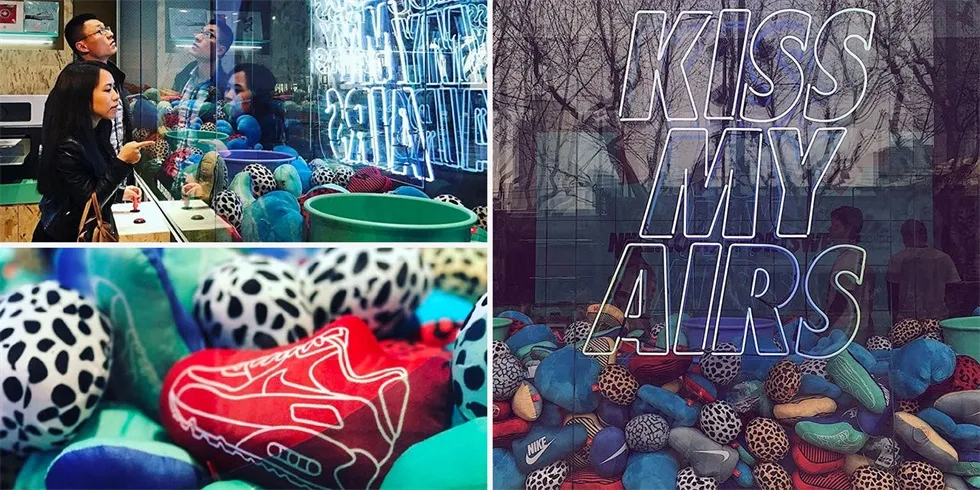 在Air Max日的前一周,在耐克上海的旗舰店进行了一系列的安装搭建,让客户可以接触到Air Max的产品。其中包括Remix My Airs,这是一个连接应用程序的定制体验,可定制T恤、珠宝和播放当地艺术家的原声音乐。商店的前橱窗安装了一个超大的抓娃娃机游戏,让顾客有机会赢得由罗西·李设计的Air Max纪念品,同时也提供了街头活动的能见度。