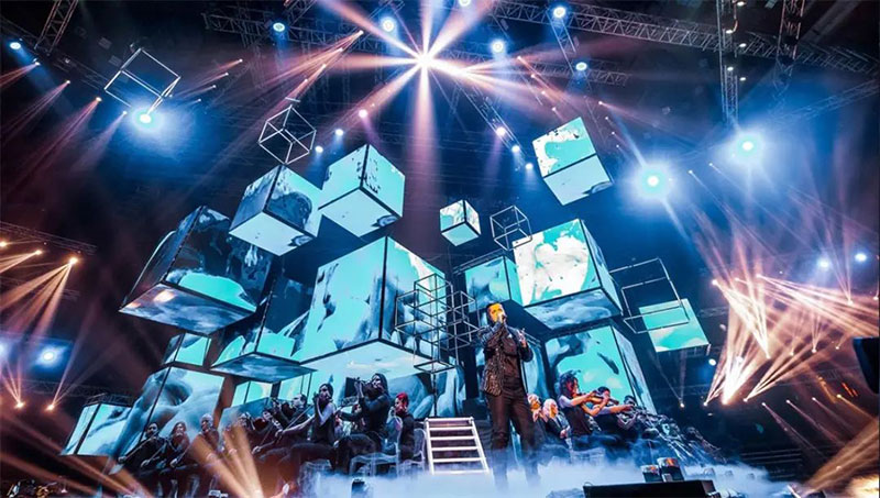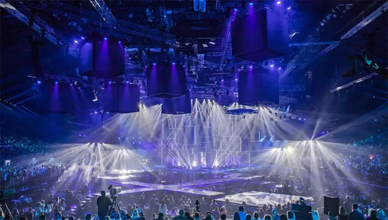 音乐大奖颁奖典礼把巨大的体育场馆变成了巨大的电视演播室。音乐颁奖典礼(MAC)连接5个地区国家的独特的电视和直播节目,天空音乐将5个舞台融合为一个宏伟的舞台,立方体屏幕连接到一个超大屏幕,以及令人印象深刻的3600万像素等元素,需要特殊的准备和视频导演设置,其中包括5个最现代的4K处理器,由特定的模拟方式系统连接。300台1t吊链机,30台变速吊链机,700个移动固定装置,超过280吨的设备,最终呈现了完美的创意和创新。