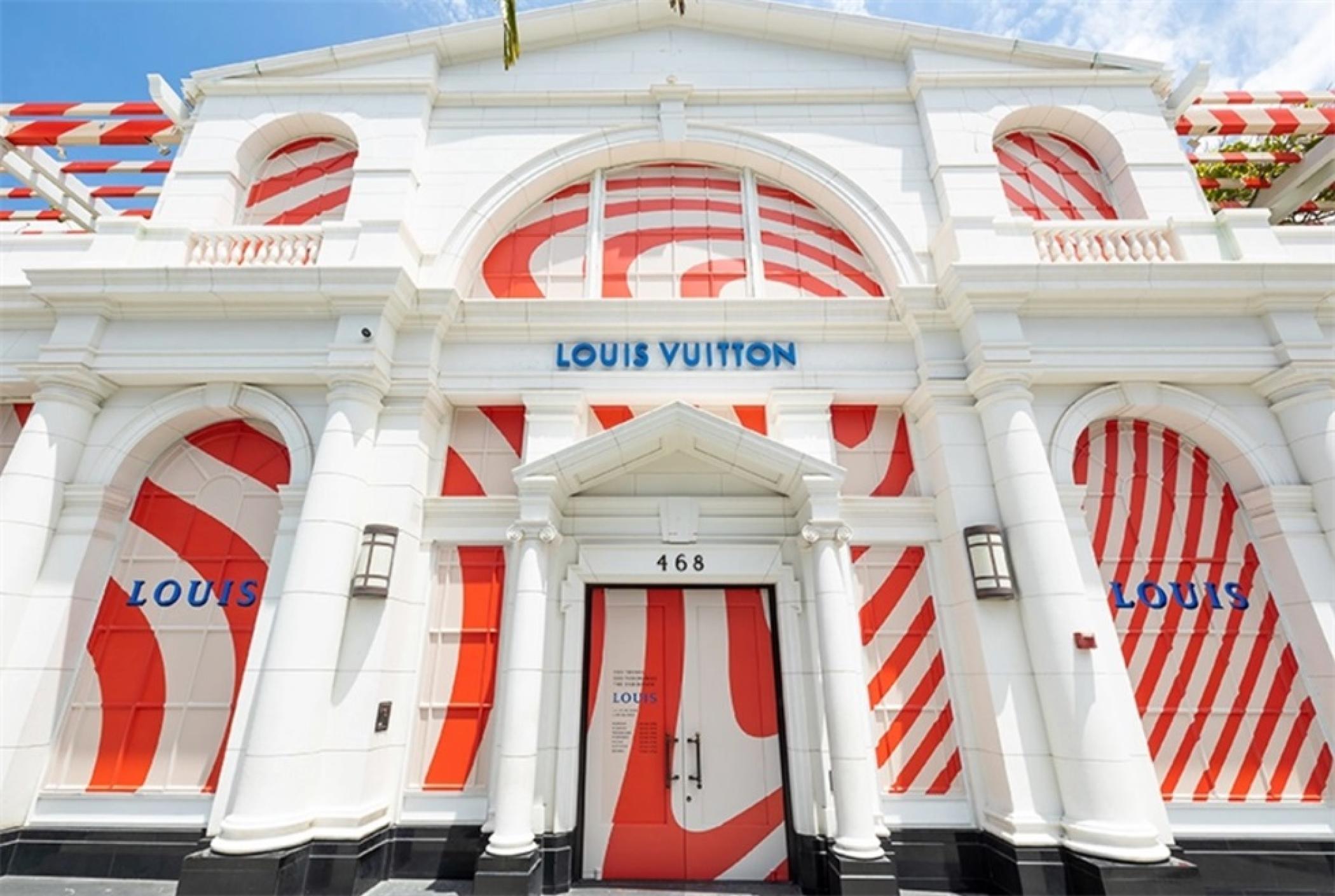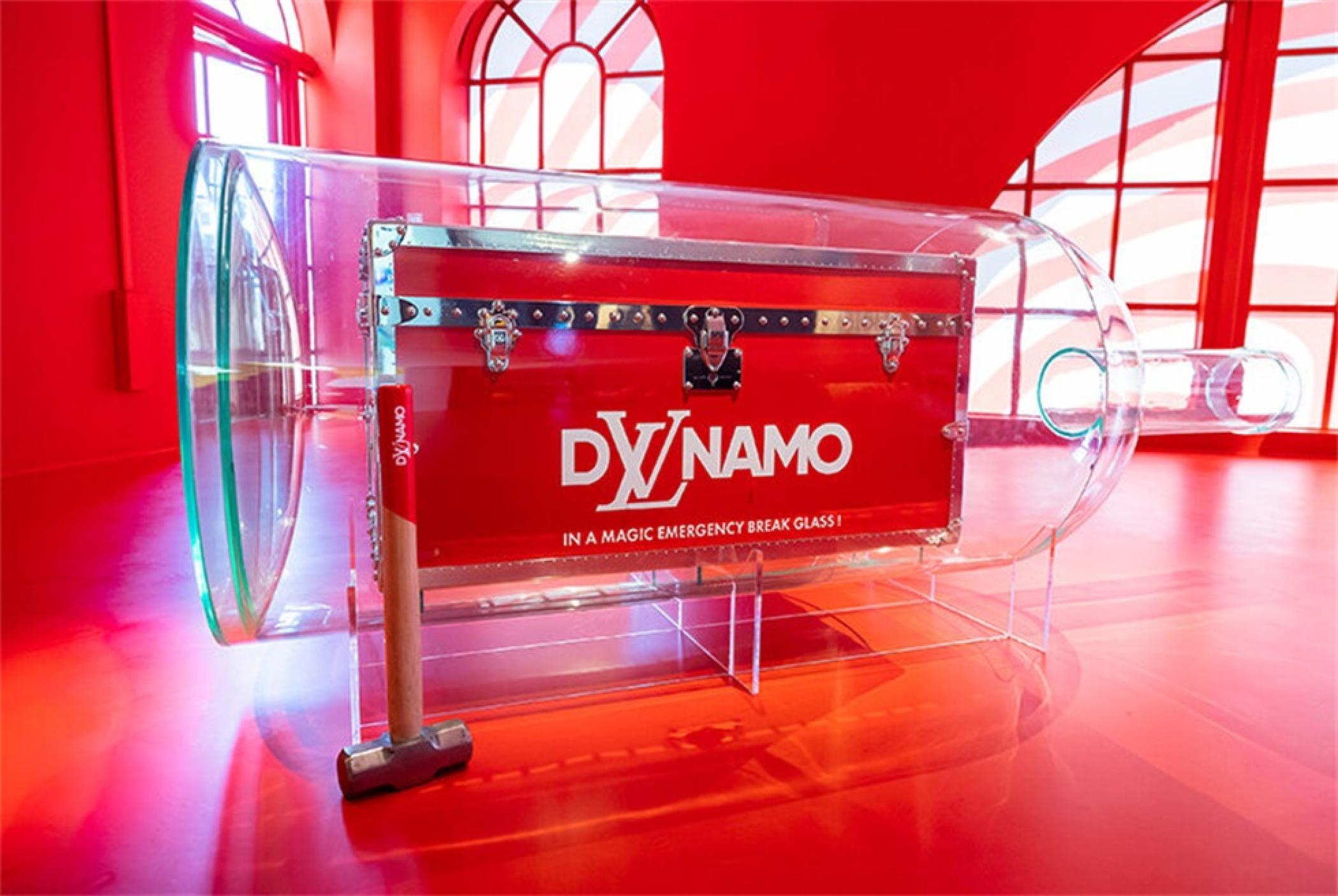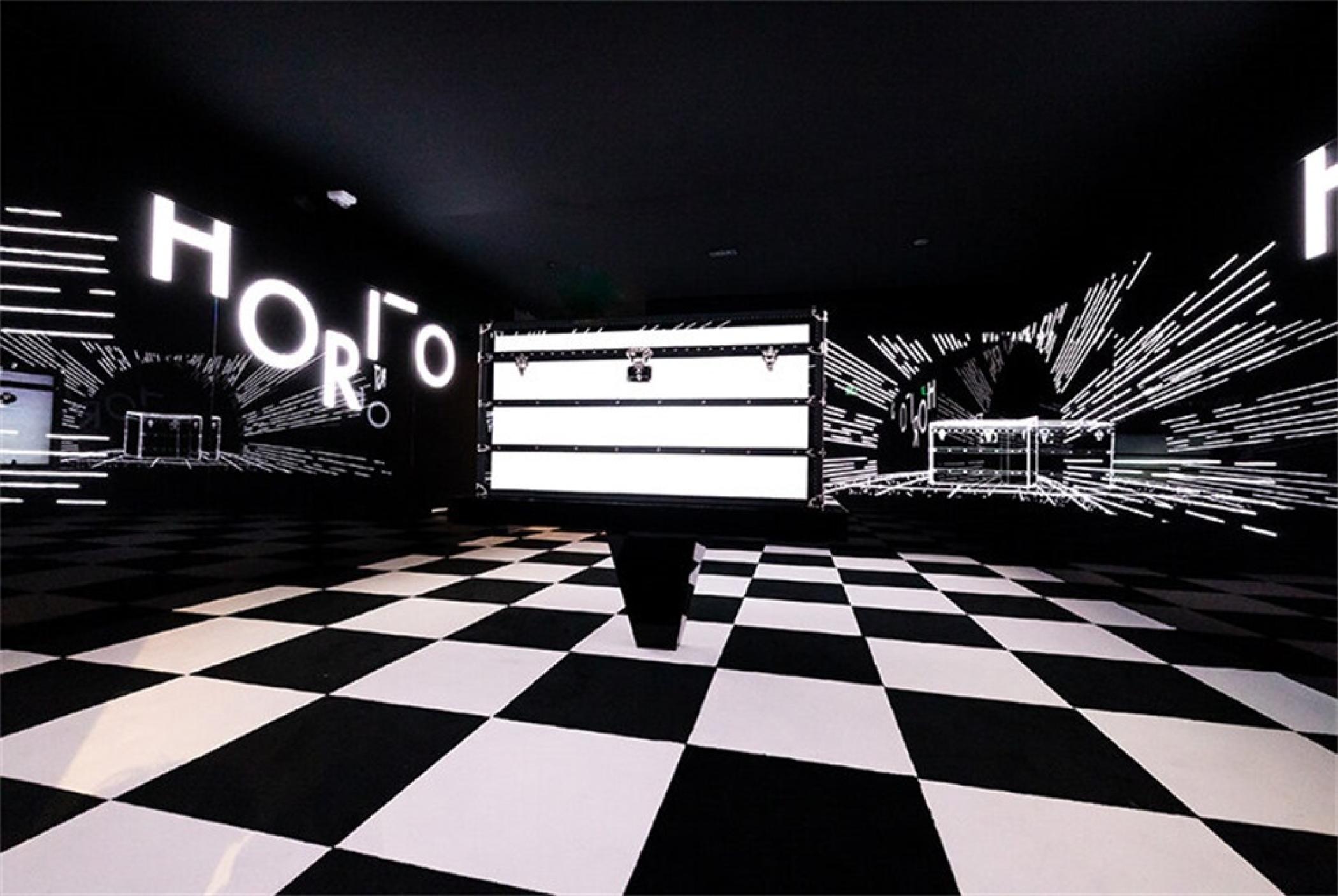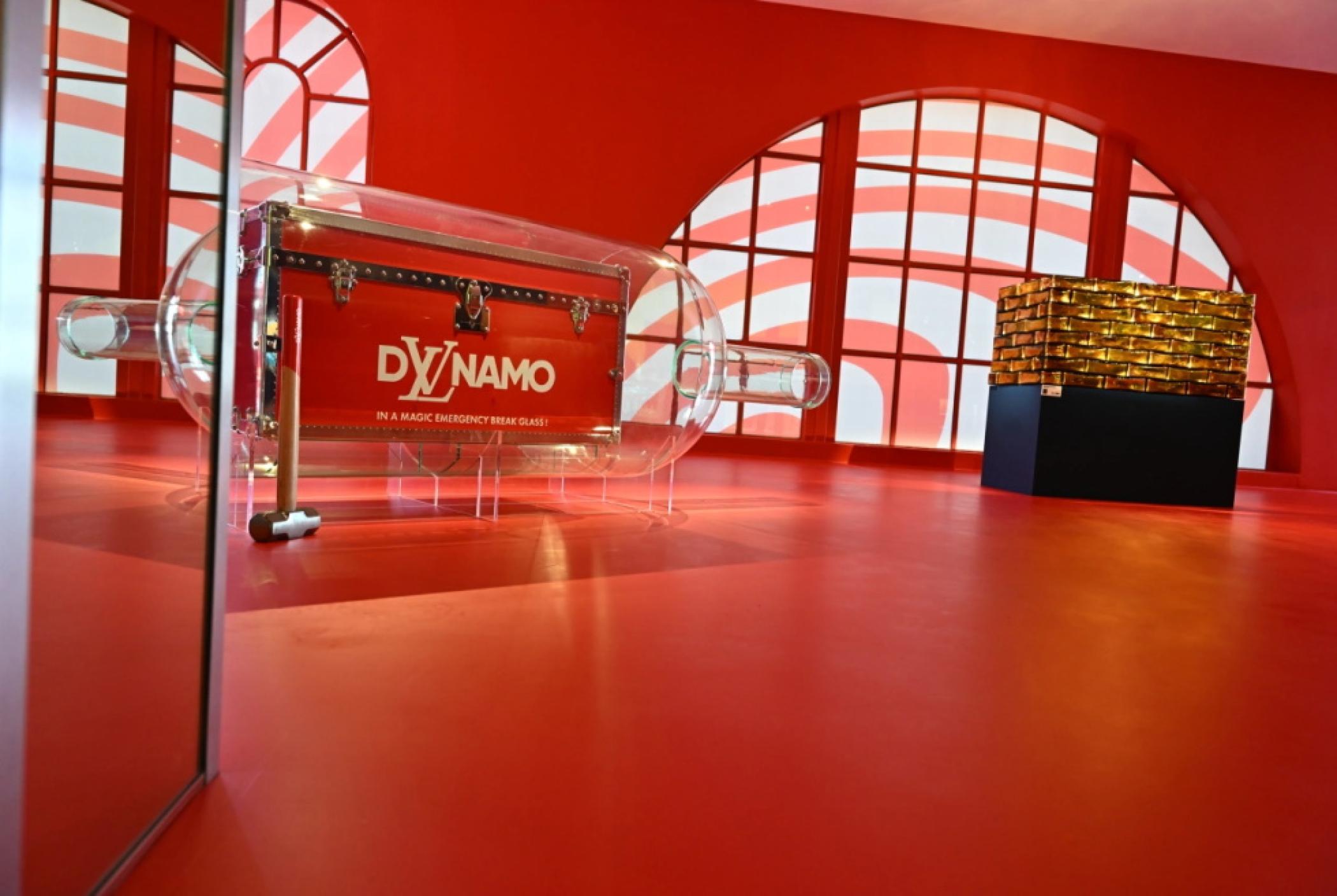 路易.威登(Louis Vuitton)的“200个行李箱200个梦想家”展览占据了一整座建筑,其大窗户被充满活力的条纹包裹着。一旦进入室内,游客将会遇到一个“机器人”造型的行李箱,在那里,一个个镶嵌着数字屏幕的行李箱——“魔盒”——连接着近200年历史的过去和未来。