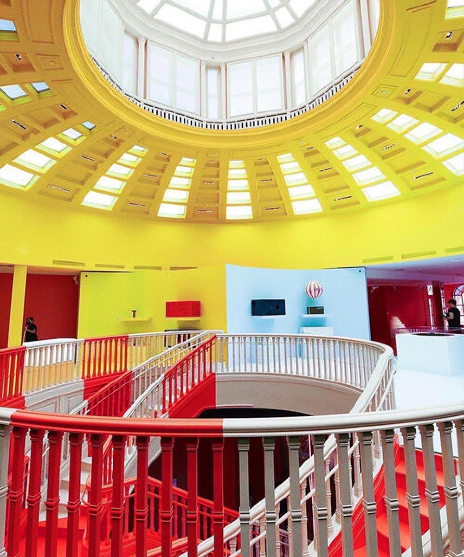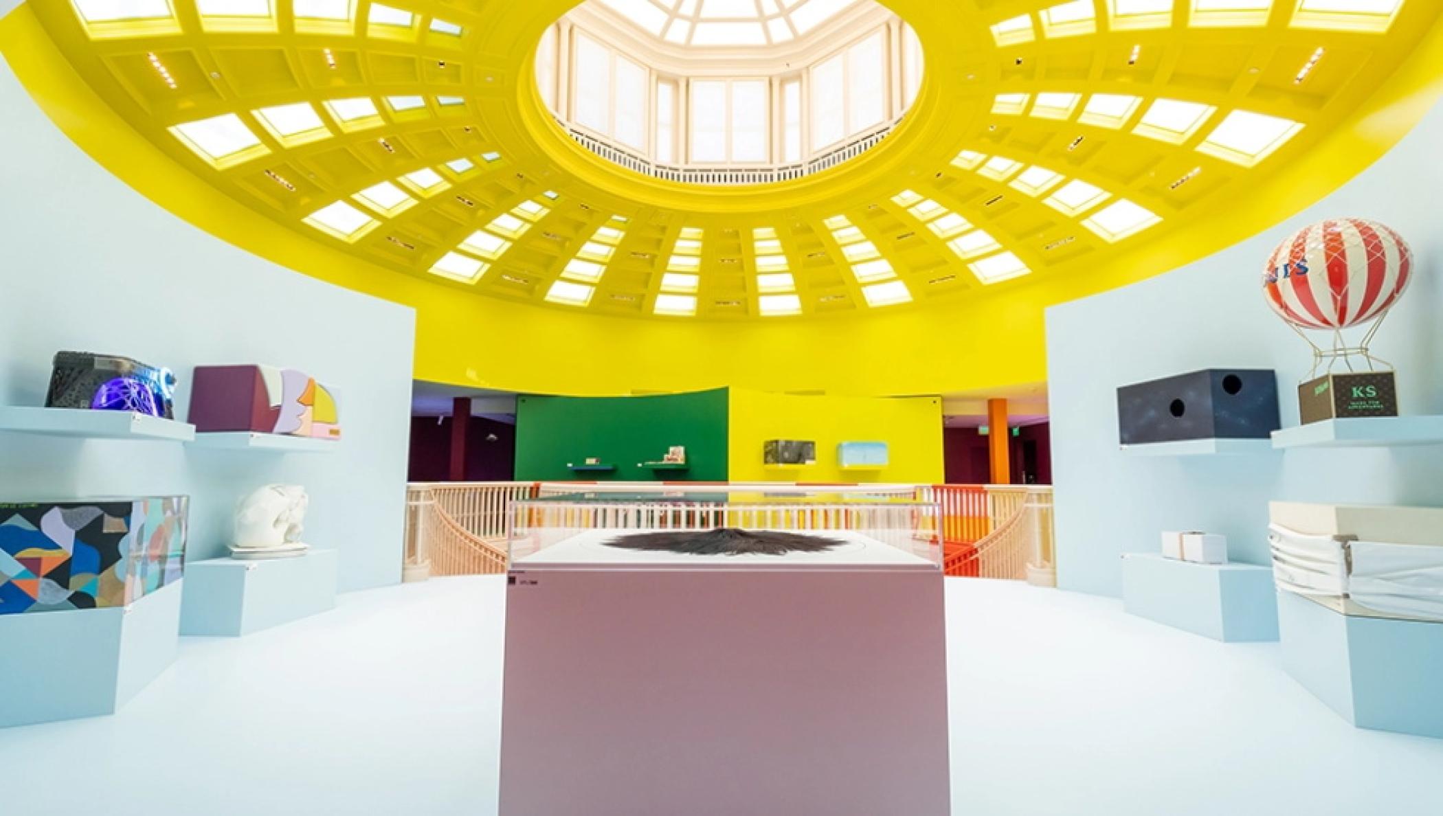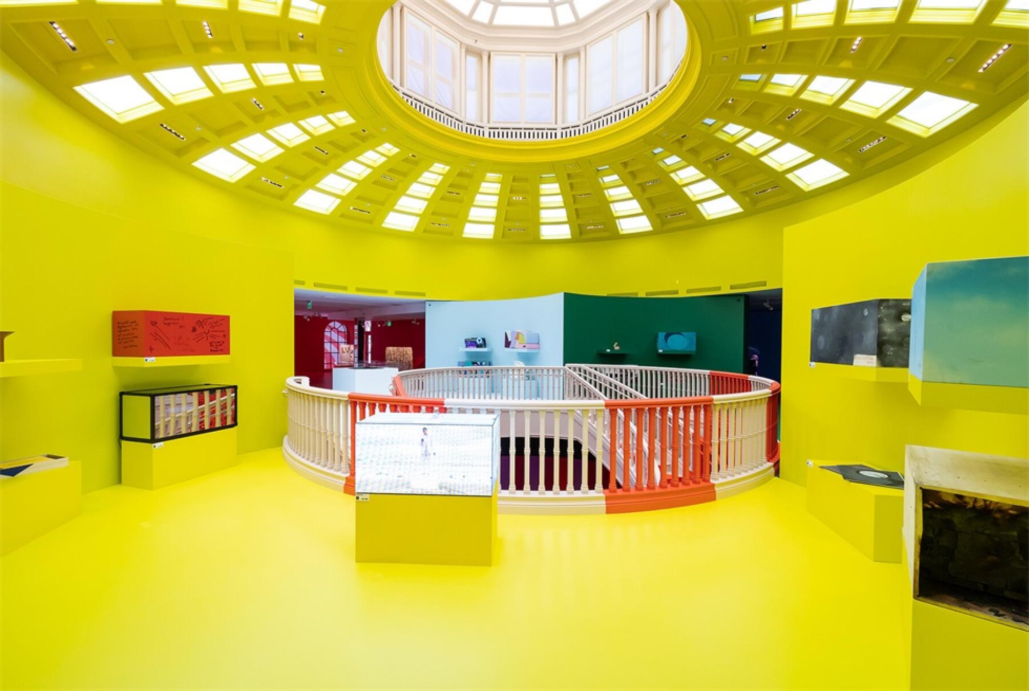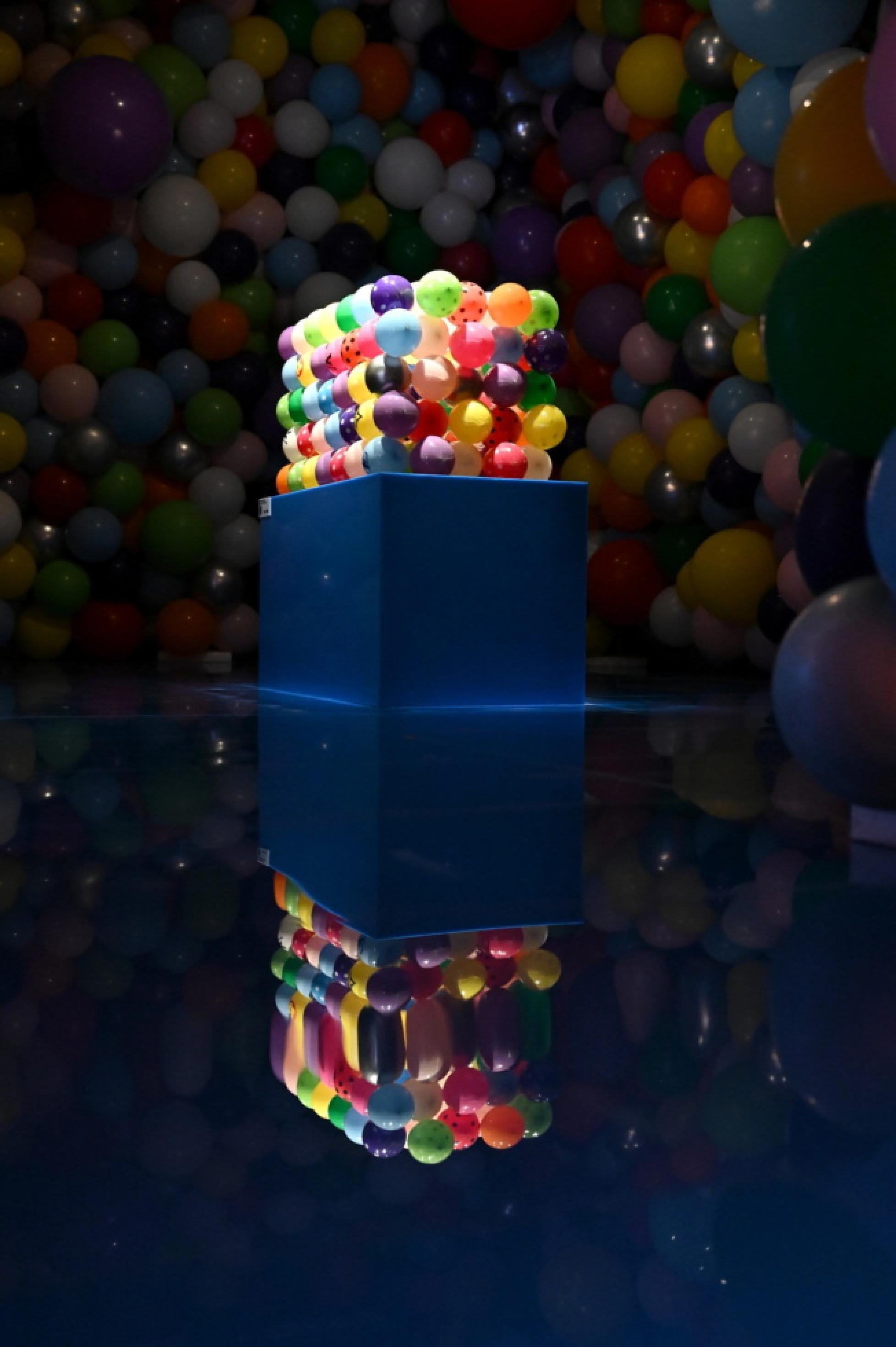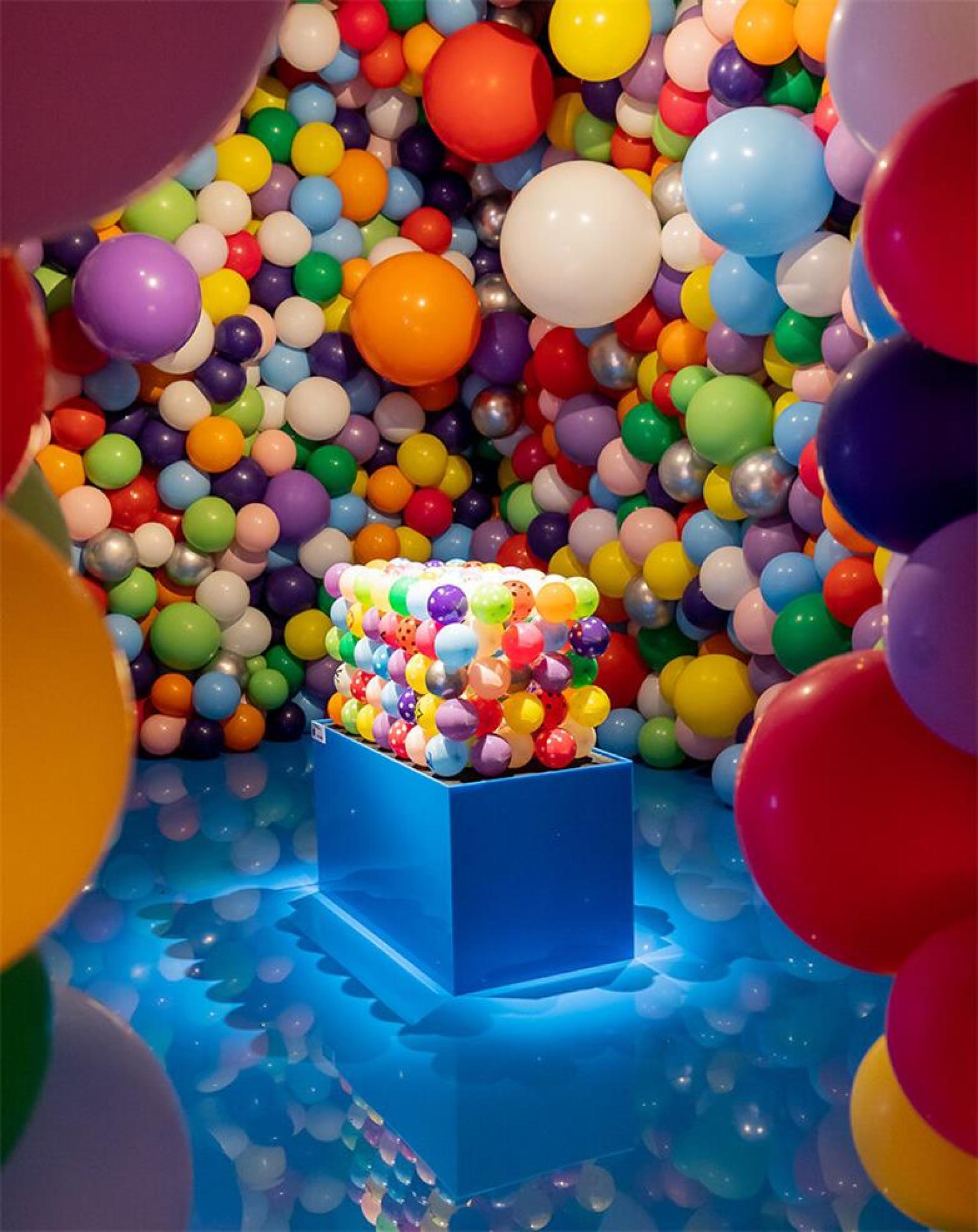 布鲁克林气球公司的罗伯特·莫伊设计了一间沉浸式的房间,围绕着艺术家的彩色环氧树脂和彩绘气球箱,里面有更多的气球。在登上一组带有条纹的楼梯后,游客到达“梦幻景观”,在那里,其他的旅行箱设计作品在生动的而充满创意的透视法中被展示。
