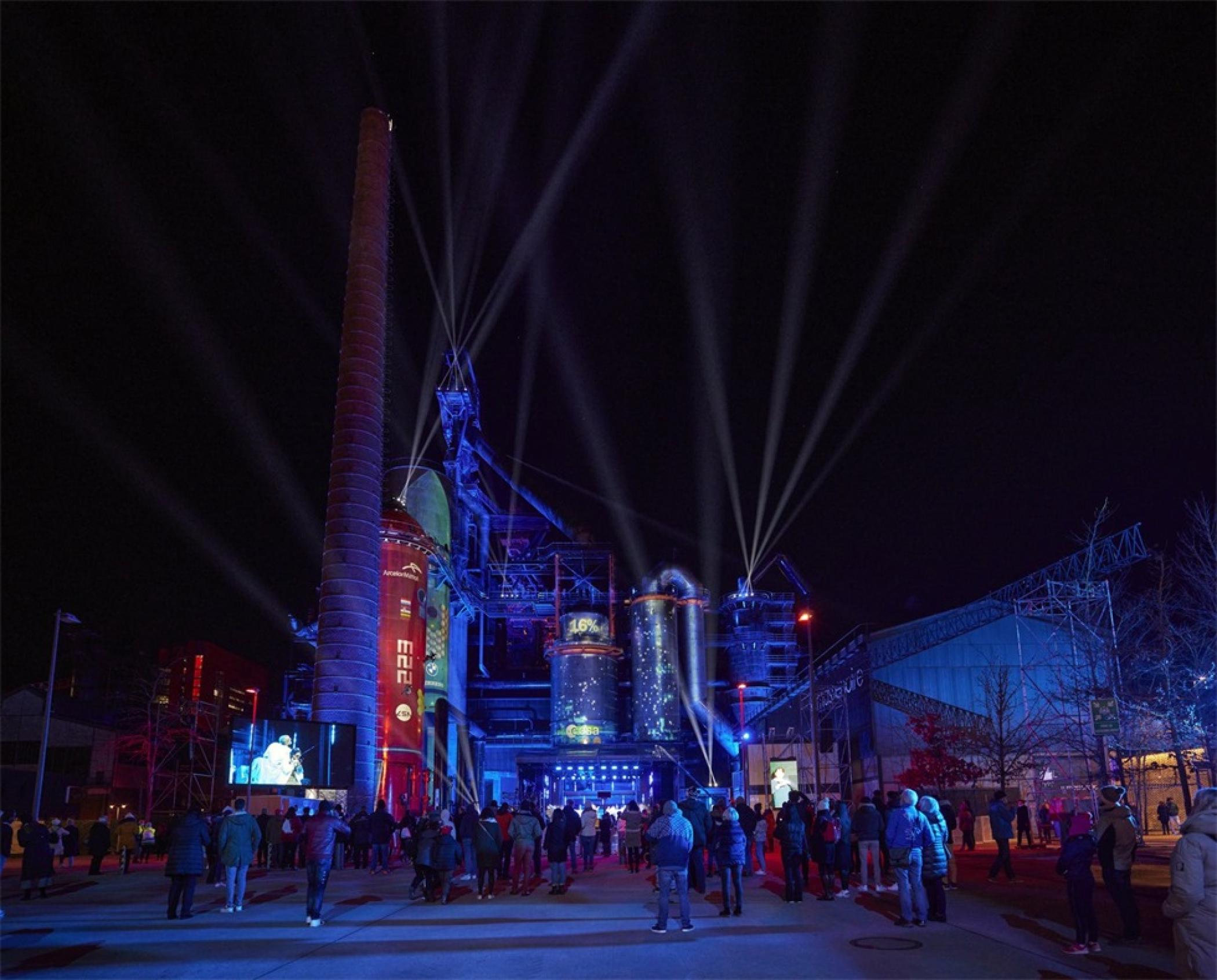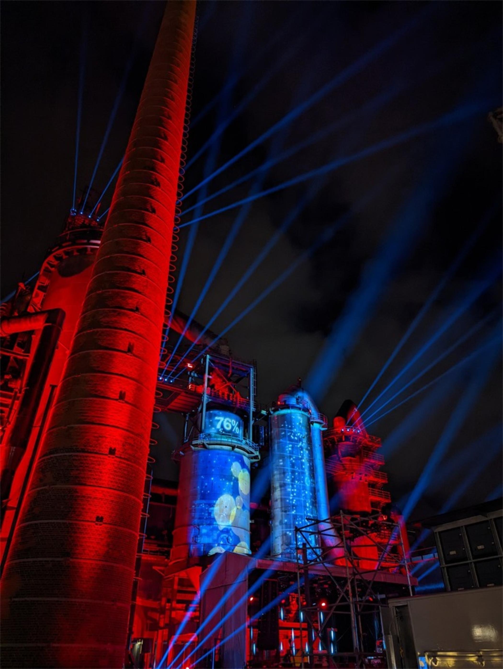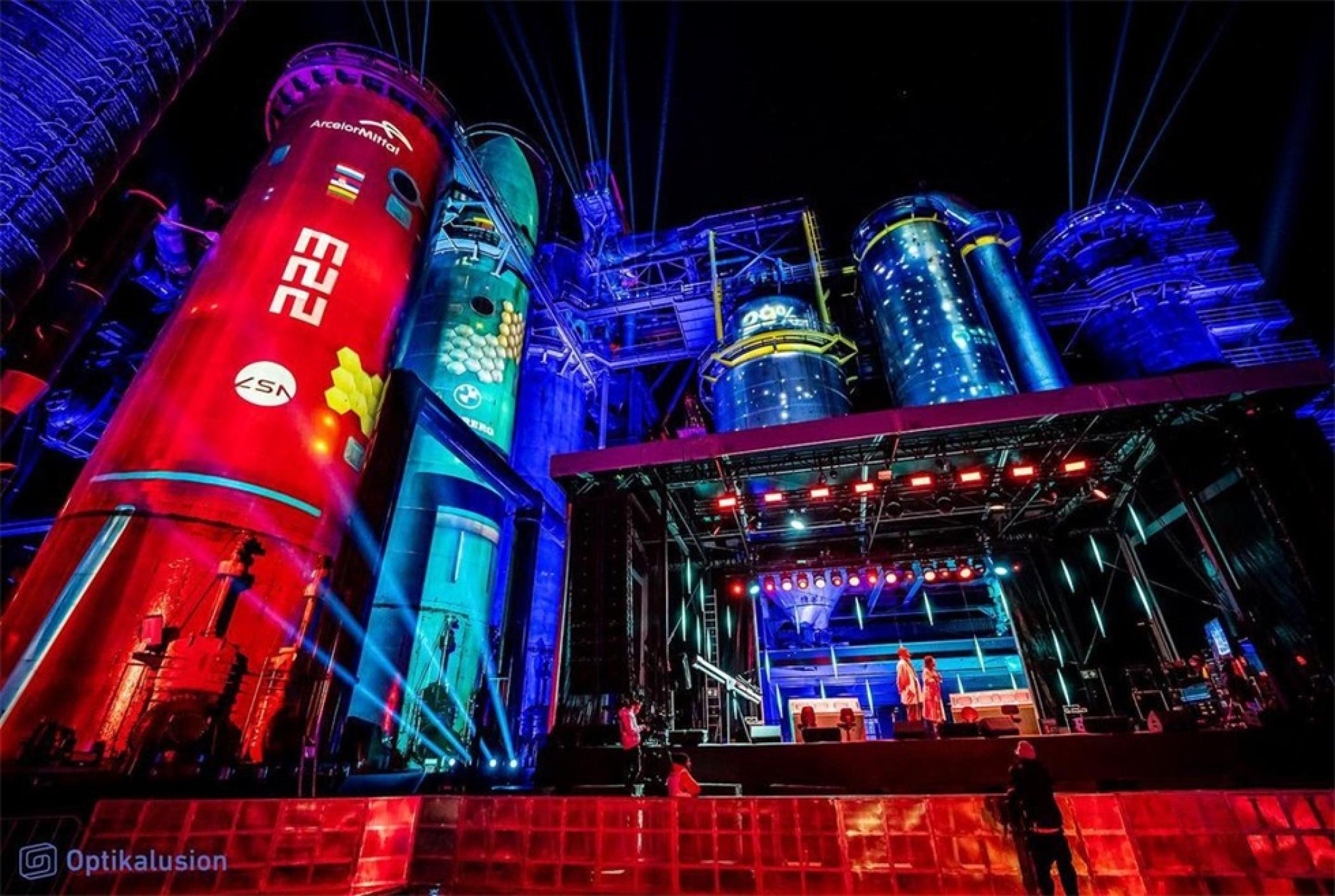 埃施欧洲文化之都开幕式活动策划现场之一安排在了曾经的老钢铁工业基地贝尔瓦尔,以工业设备作为投影映射的载体,形成了巨大的舞台背景,为观众带来强烈的视觉冲击。