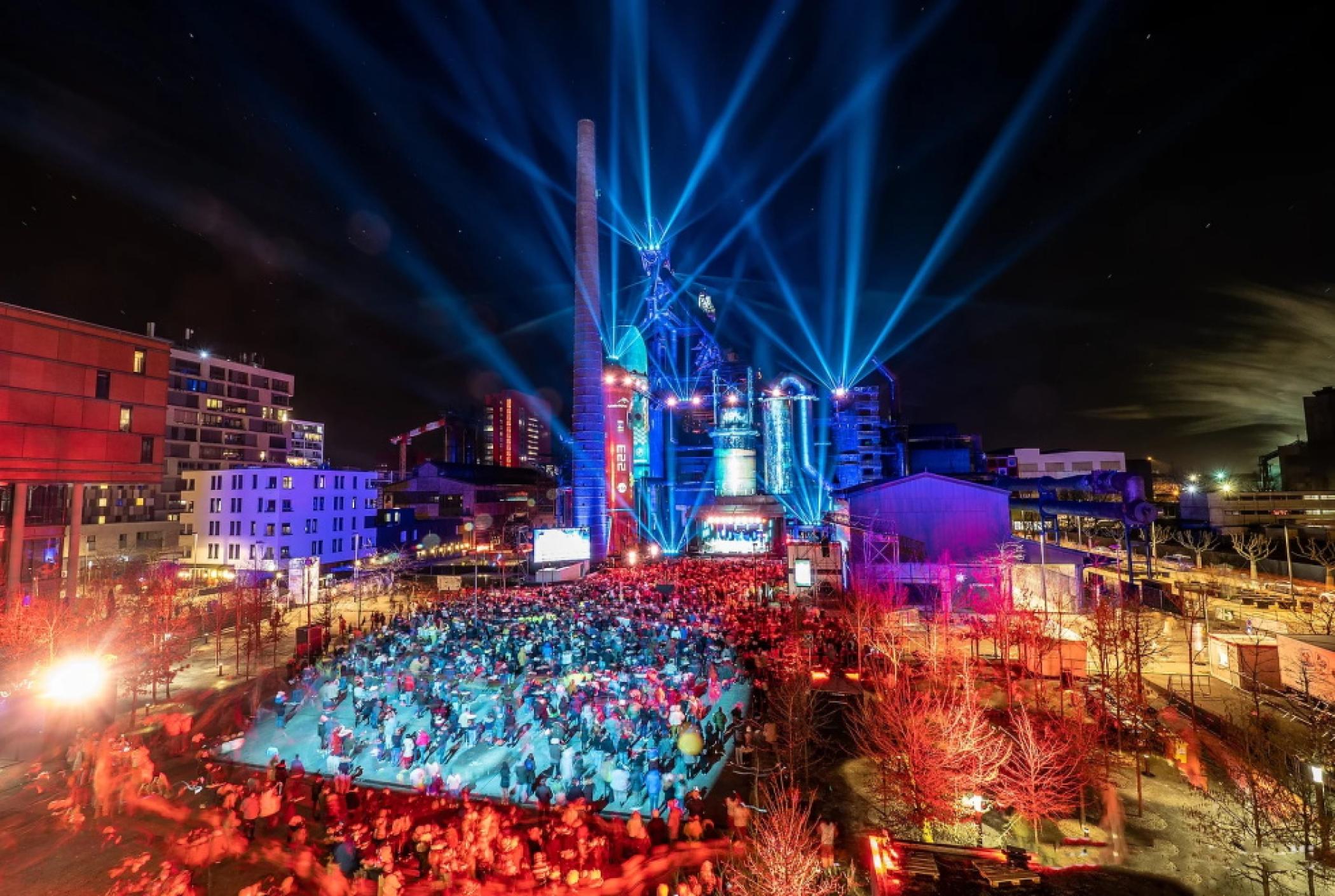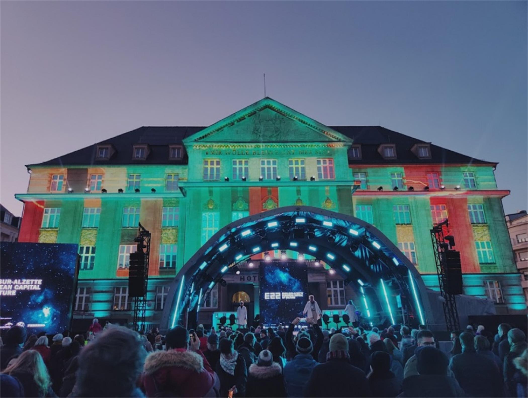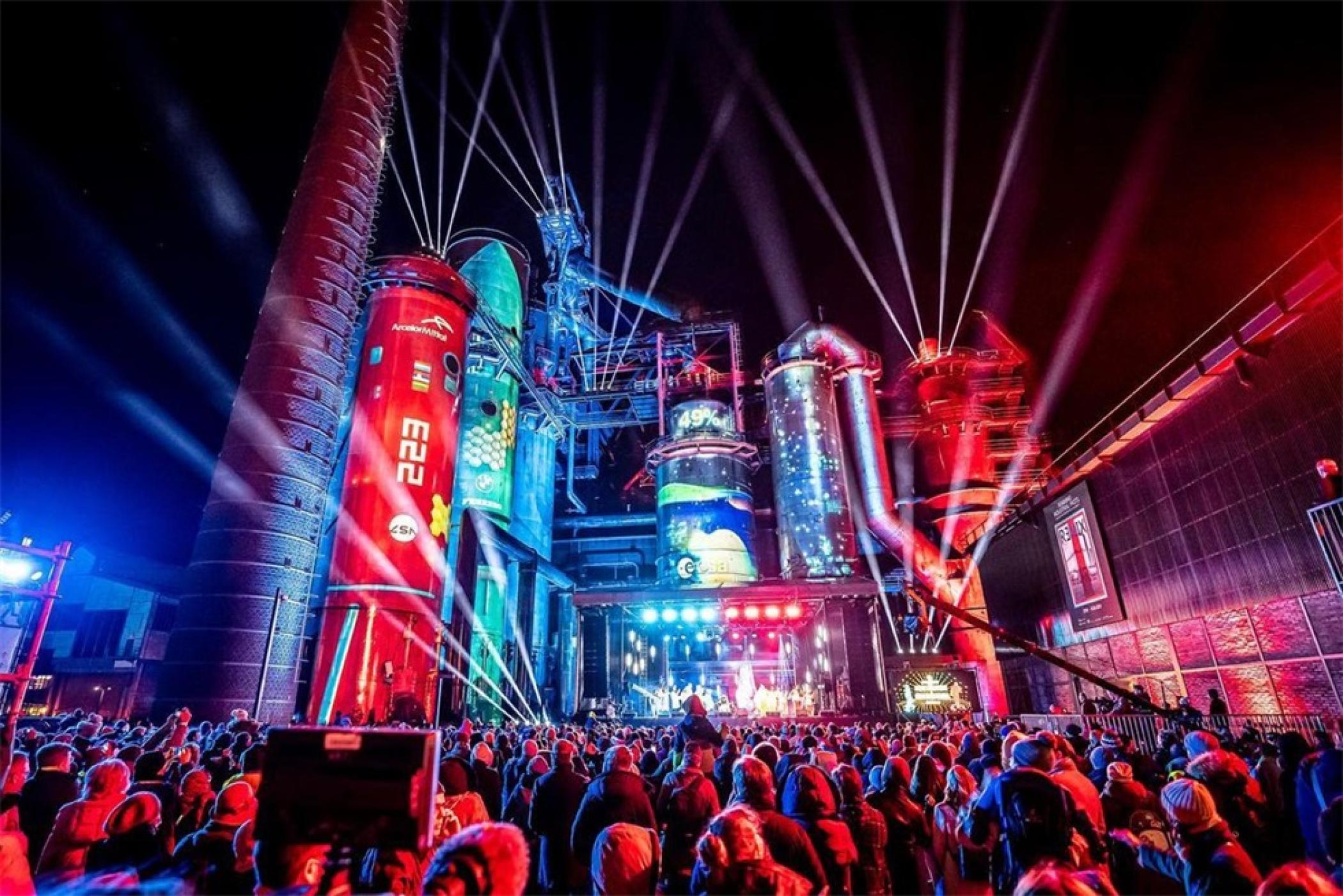 埃施欧洲文化之都开幕式活动策划现场之一安排在了曾经的老钢铁工业基地贝尔瓦尔,以工业设备作为投影映射的载体,形成了巨大的舞台背景,为观众带来强烈的视觉冲击。