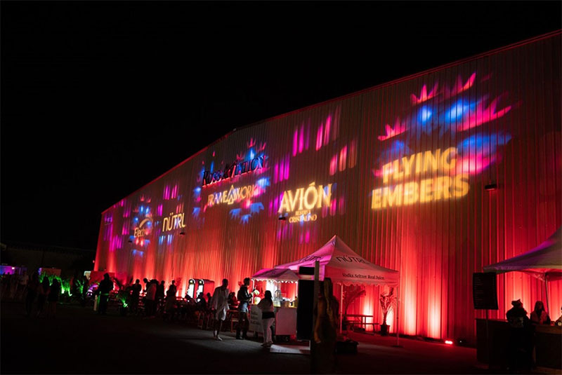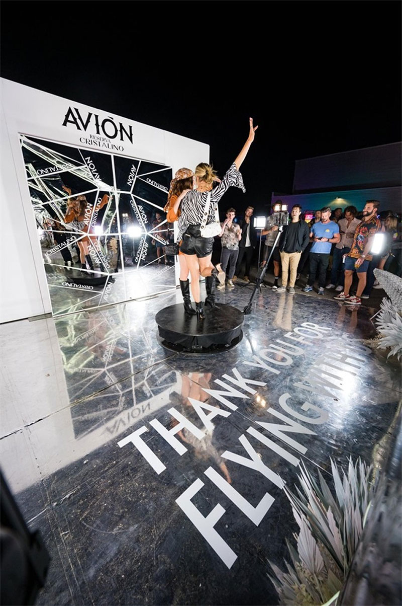 Avión特级香槟在科切拉音乐节艺术节上举行的品牌激活体验活动,现场以一套特别设计的照相装置吸引音乐节观众参与。产品展示、现场的拍照背景都与品牌包装保持了一致的银色。活动还特别将品牌logo投射到活动现场的外墙上,在音乐节热闹的夜晚吸引了眼球。