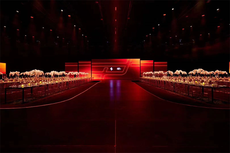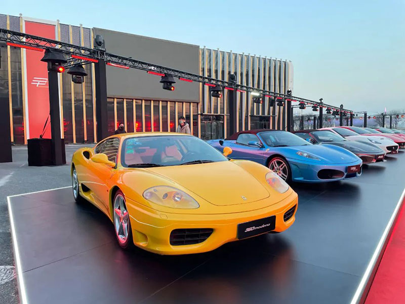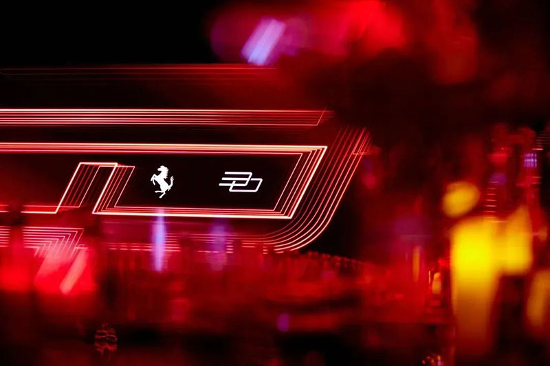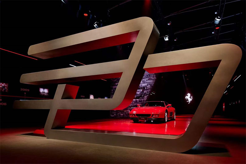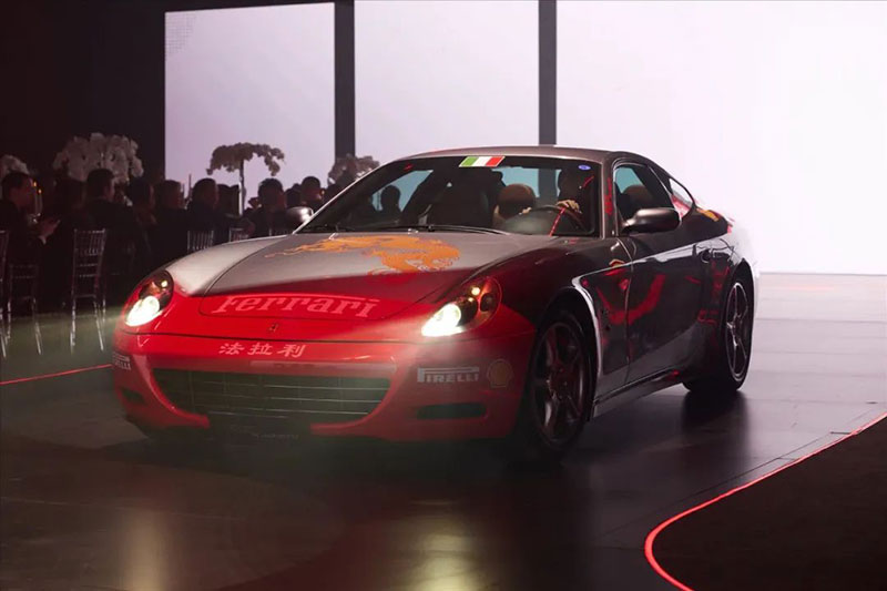 盛典现场,一众跃马超跑组成的法拉利中国30周年主题徽标,是全场最大的视觉icon。沿红毯前行,348 TS、360 Modena、Enzo Ferrari、612 Scaglietti、F430 Spider、FF、LaFerrari、California T、GTC4Lusso等50余台法拉利经典车型组成的跑车阵容更令人叹为观止,漫步其间仿若穿梭于一部记录品牌征程的磅礴长卷。品牌传承墙上记载的珍贵历史照片,清晰勾勒出法拉利30年间在华夏大地的成长轨迹,行走其中,又一次沉浸式的品牌文化输出,同样也是大家较为熟悉的玩法,是提升氛围感和链接场内外的好方式。内场发布区域,是晚宴+T台式的舞台组合,组合屏和左右侧屏能给予视觉上更好的包围感,T台方便后面车型的绕场巡游。落座其中,氛围极佳,是豪华汽车品牌晚宴中常用的设计。