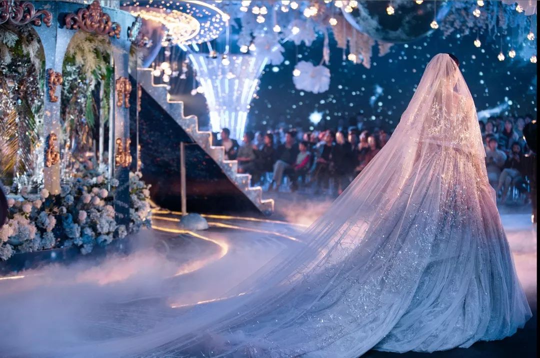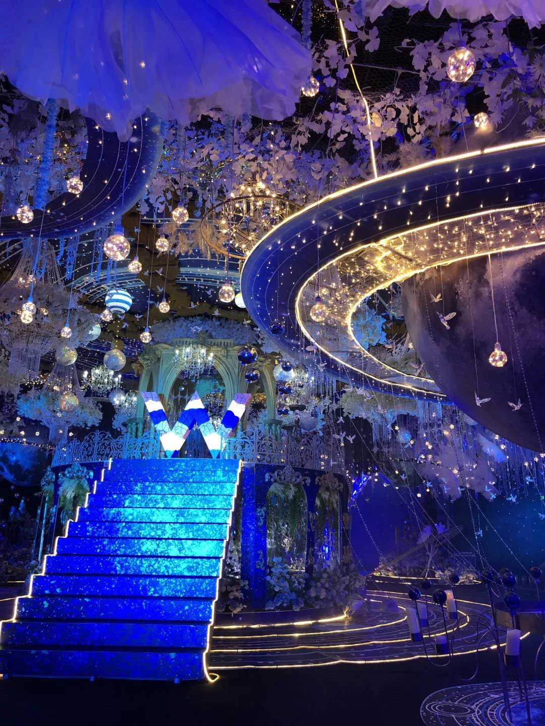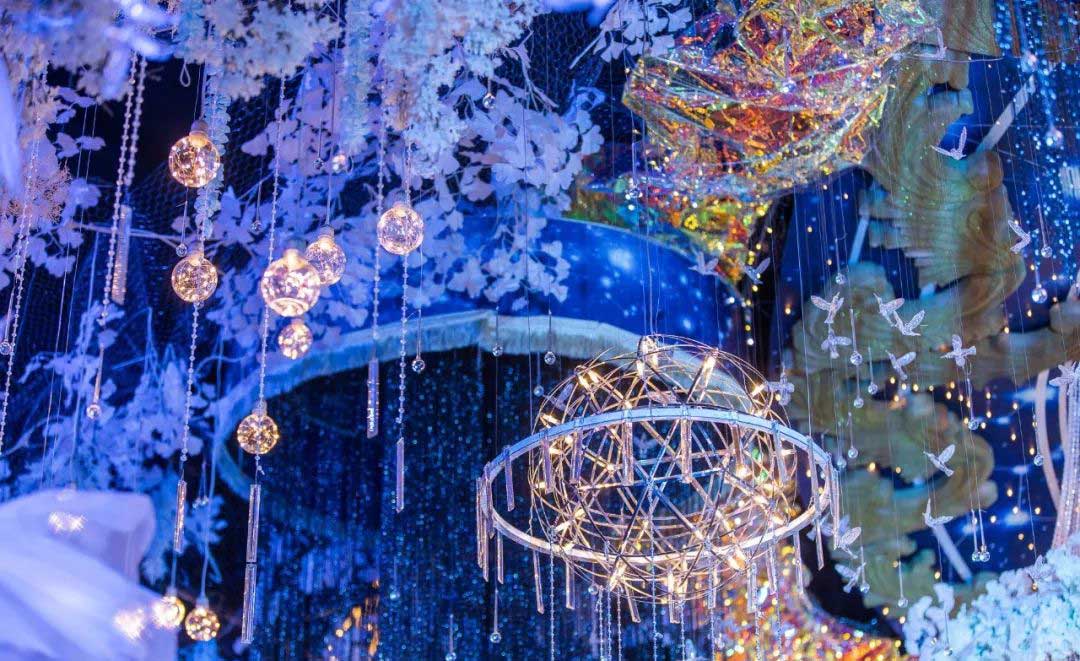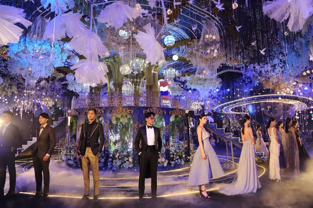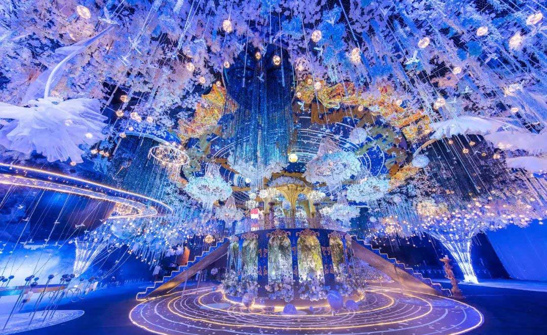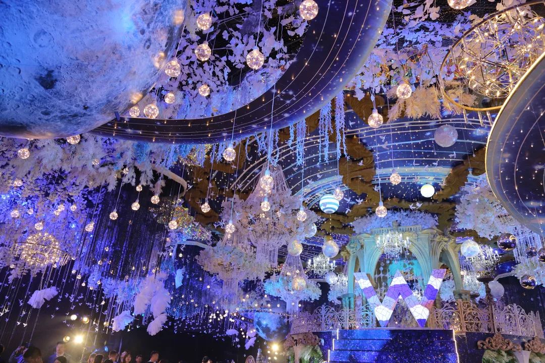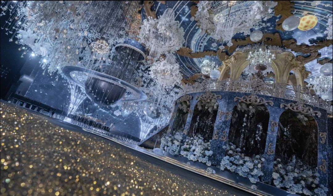风靡全球的teamlab技术被应用到了此次婚礼秀中,在星球艺术的指引下,数字灯光艺术与宇宙婚礼主题作品相互交织,感受光、影、声、动沉浸式体验。