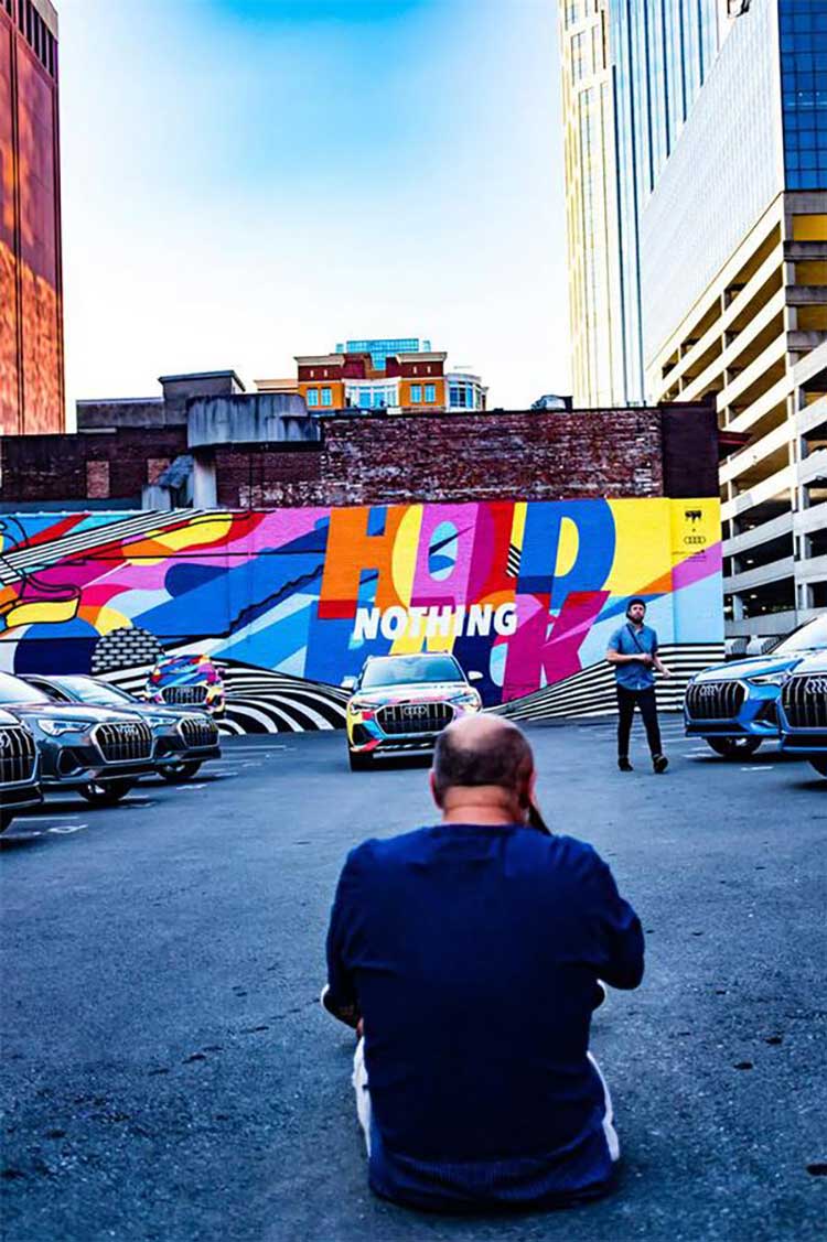 纳什维尔除了是音乐之乡,还以街头壁画而闻名。奥迪在纳什维尔市中心邀请No Kings (艺术家组合)创作了一面奥迪Q3特色壁画墙面,引起了城市的关注,为城市增添了一幅新的壁画墙。