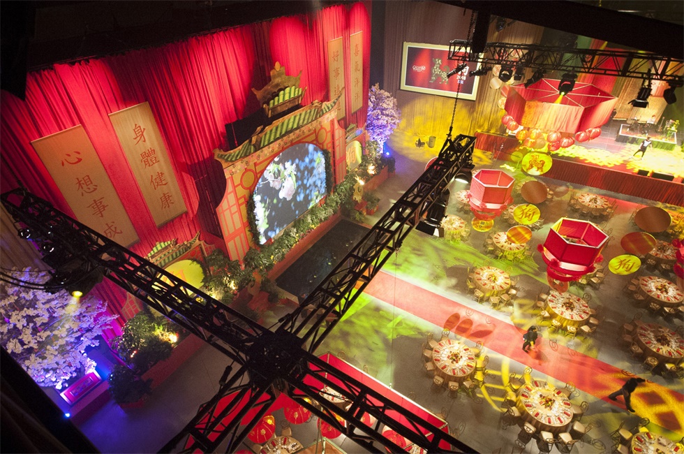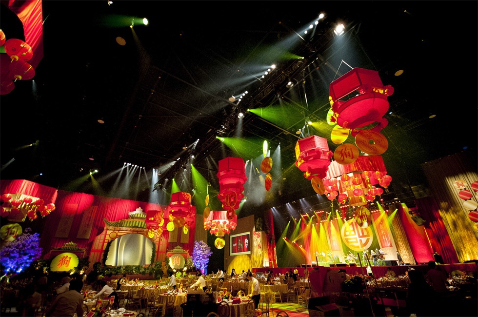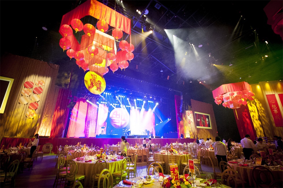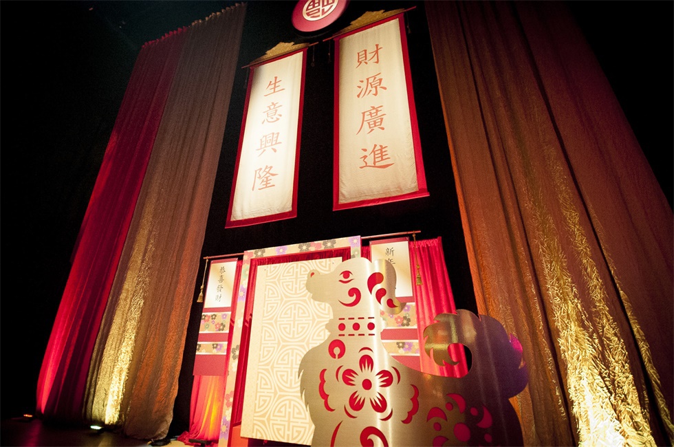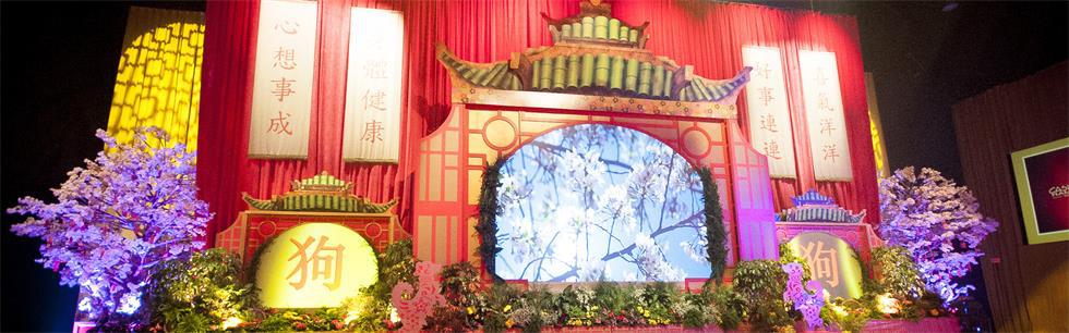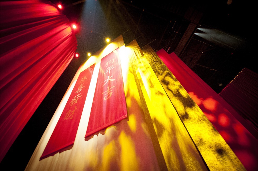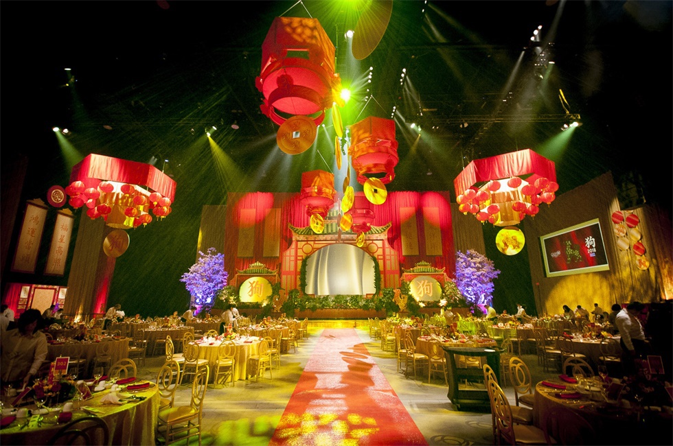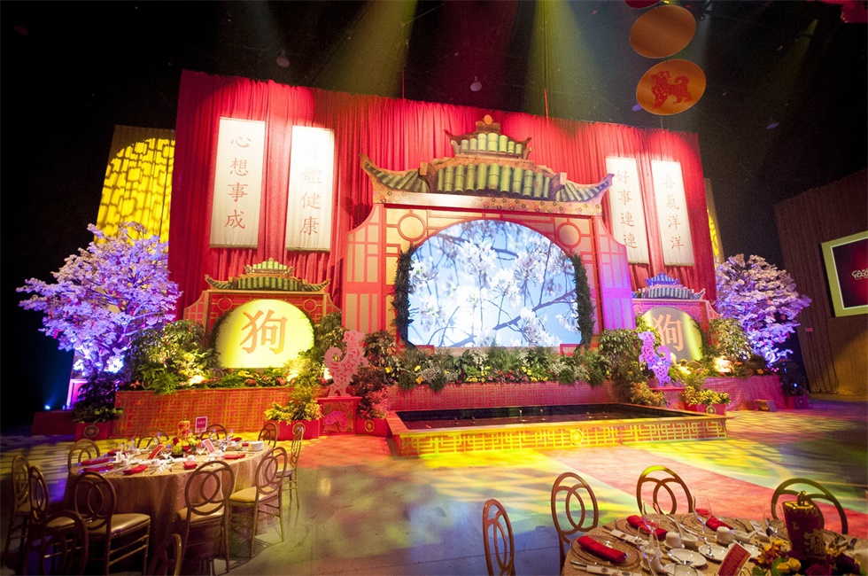 2020年鼠年马上就要到了,各大企业的行政部分也开始各种忙活起来了,忙着找策划公司筹备企业年会策划的事了,也有些企业员工们边上班边排练年会上要表演的节目,什么舞蹈啦、乐器啦、小品啦、相声啦等等,主持人也开始各种写稿背稿排练啥的,一刻也没闲着。为了迎接新的一年,这年会上的新年晚宴是一点都马虎不得的。不管是哪个年份,都是属于中国的新年晚宴,既然是中国的新年晚宴,那有中国的传统年味就该充足点嘛。一起和小编看看这个中国传统年味的年会策划吧,虽然是狗年的,但其学习价值还是妥妥地存在着,这不,现场的这个通道就很不错,大量传统颜色的布幔的使用一看就是很有必要的,少了就没那个味了。