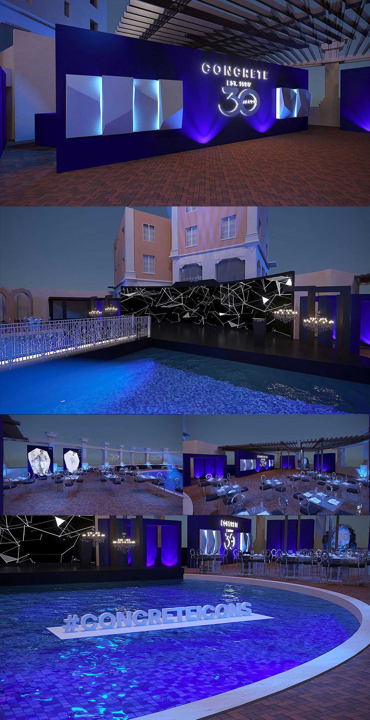 为了强调高端意大利品牌在市场上的重要地位,混泥土公司举办了成立30周年的周年庆典活动,整个周年庆典策划在游泳池旁举行,高端、自在,还有精彩的演出。