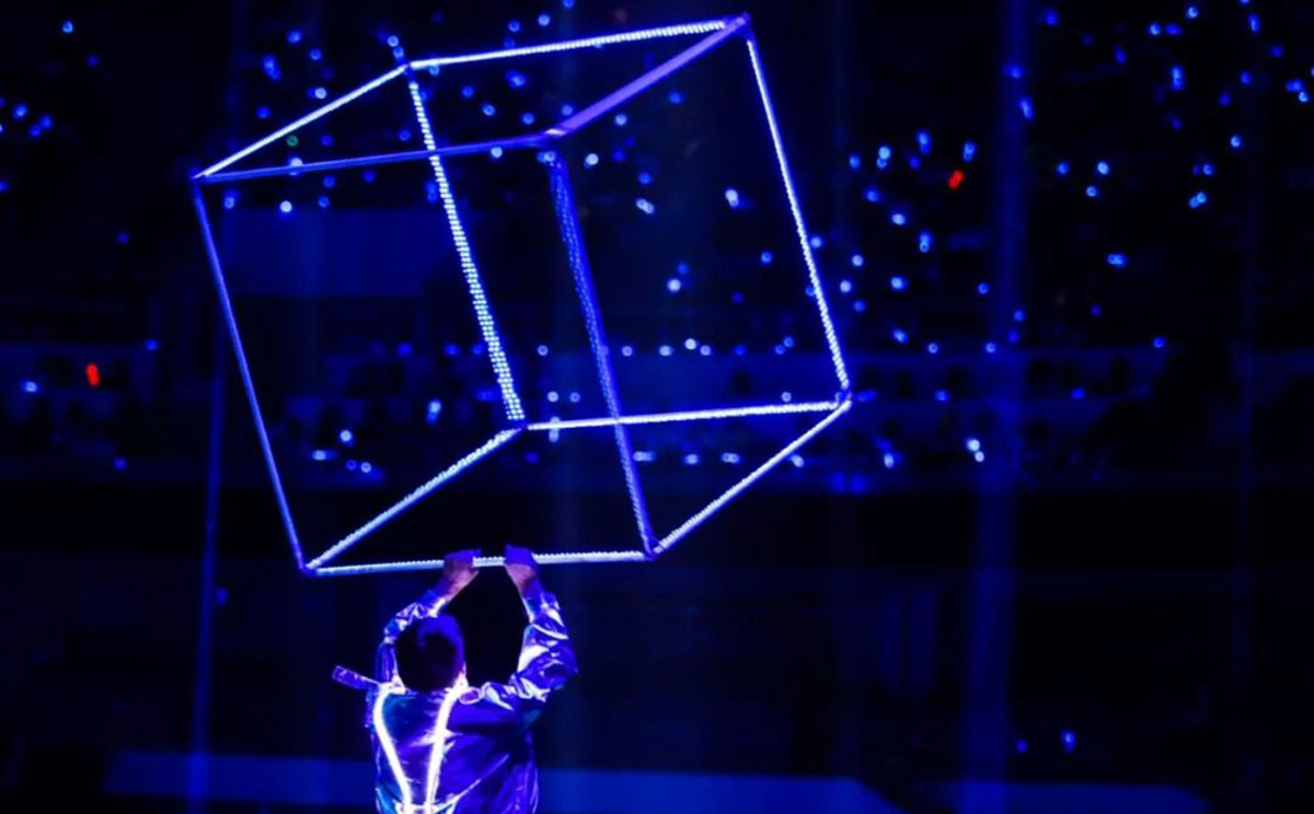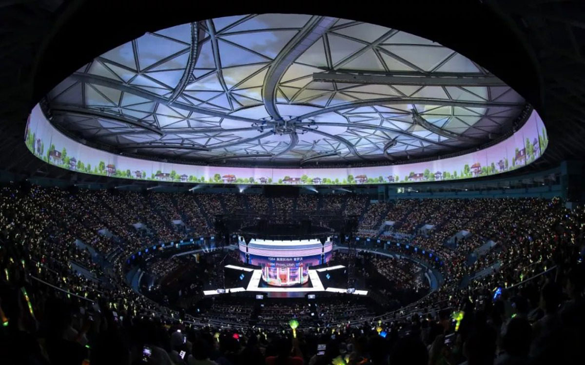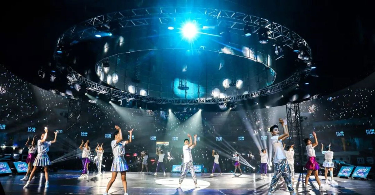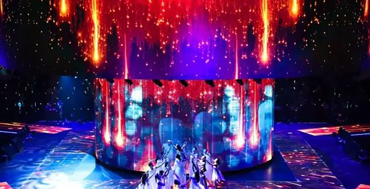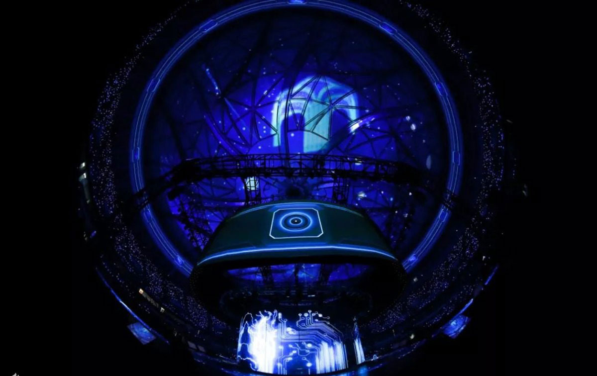 这一次,如新的超级年会策划设计了一个沉浸式舞台,结合场地的具体情况,使用直径90米的圆顶投影来实现超震撼的3D视觉效果,提供独特的360度没死角的环幕视觉环境,使用一个双层升降环屏,可见区域更MAX。