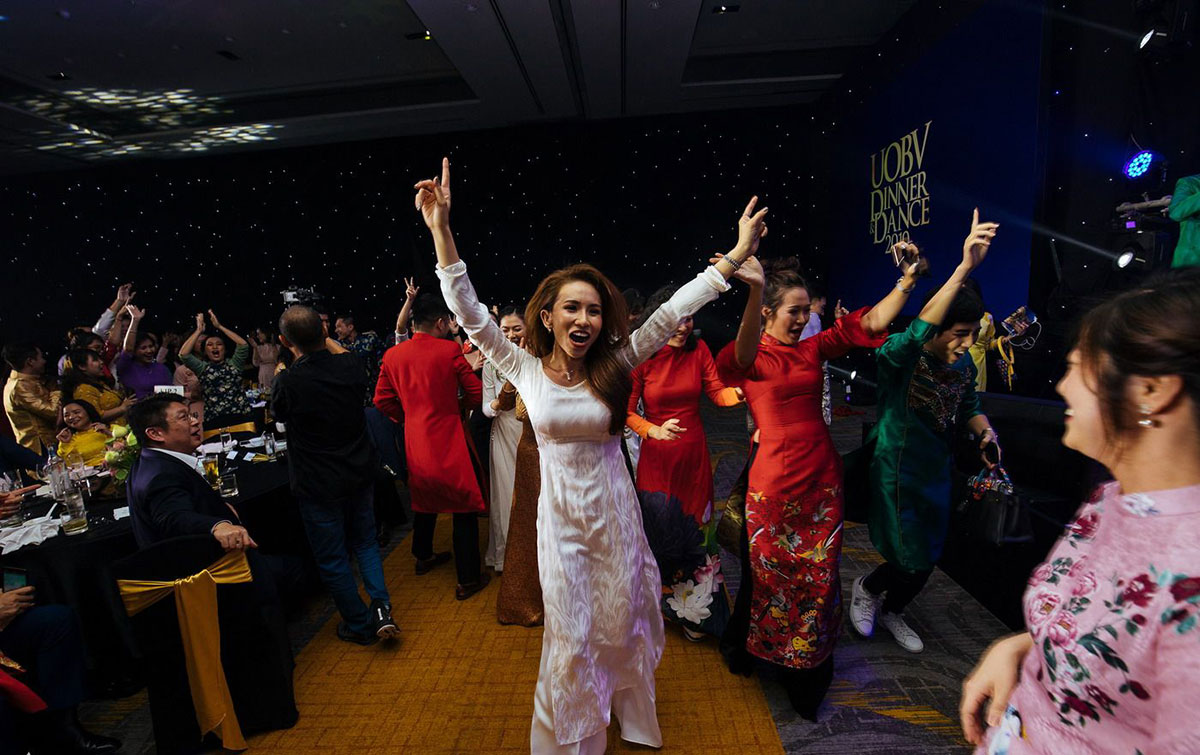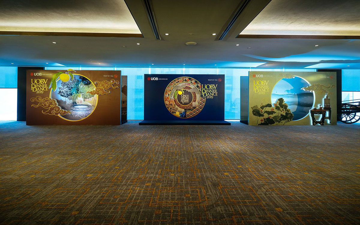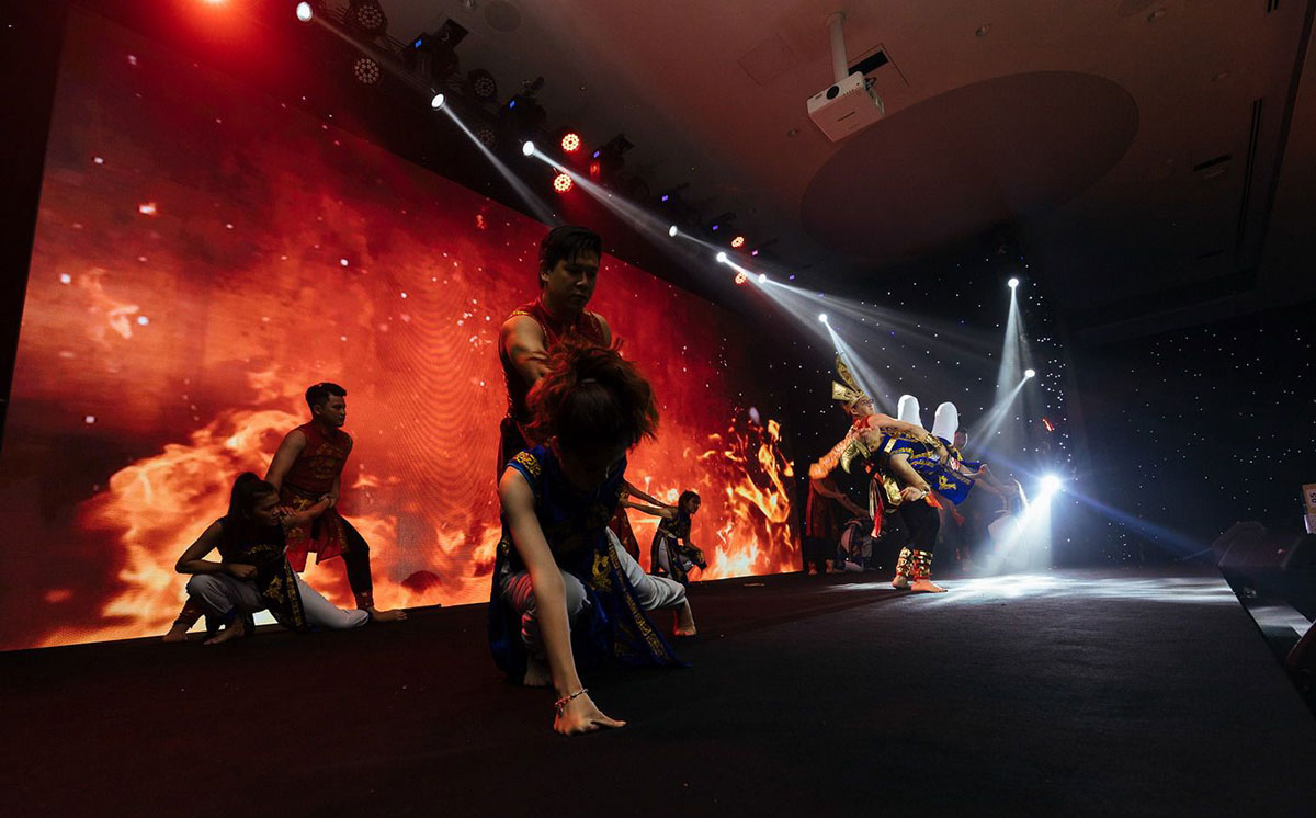 UBO晚宴活动现场的通道打卡拍照区域在设计上很有特色,用三种不同的色调表现三个不同的主题文化。内场的舞台也是用最简洁的纯大屏形式,显得活动现场更大气些。此次UBO晚宴最大亮点就是演艺上,不管是舞蹈还是歌唱节目,每一个都是一场让人惊叹的秀,而不是单纯的节目表演,更像是舞台剧的风格。