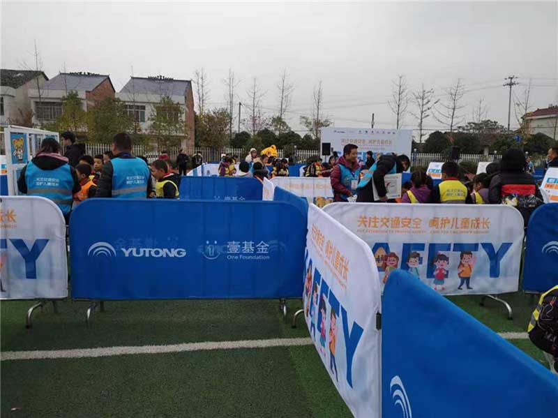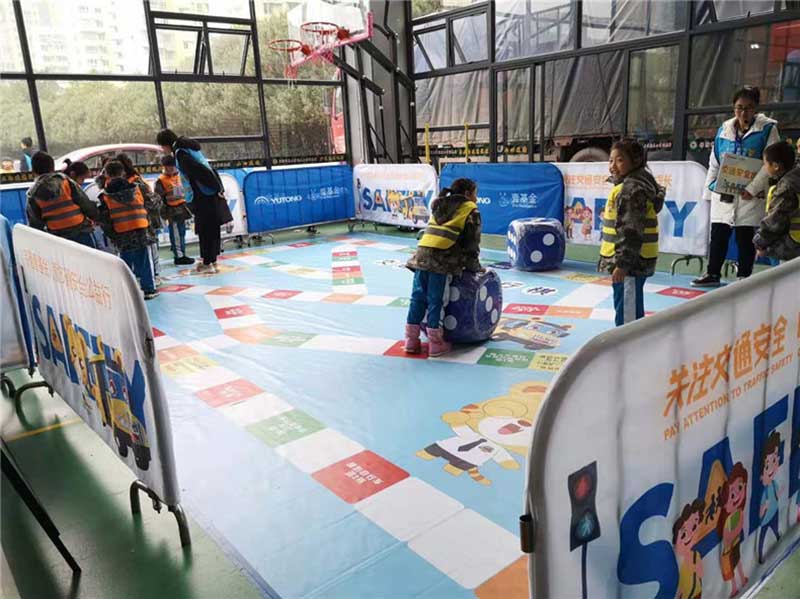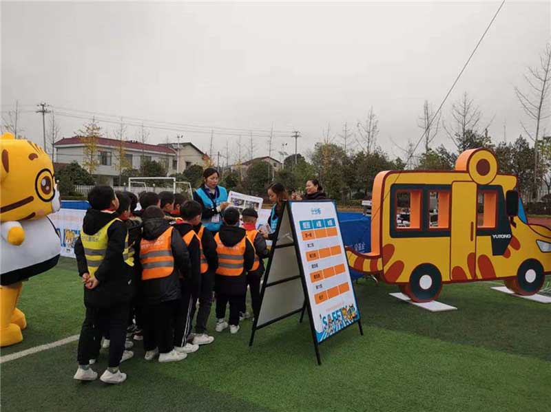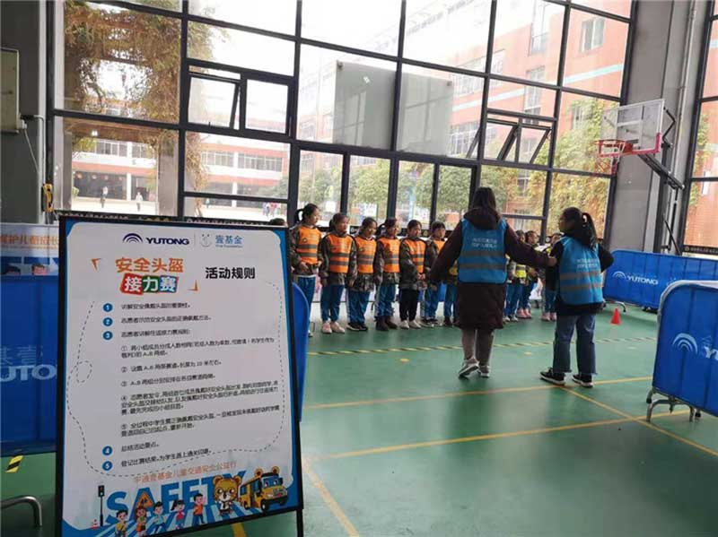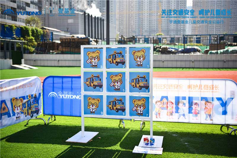 “宇通&壹基金儿童交通安全公益行”活动走进星城长沙,在国防科技大学附属小学,与孩子们一同展开了一场寓教于乐的交通安全体验之旅。在活动现场,宇通通过丰富的道具和游戏场景,让孩子们通过游戏互动的方式学习交通安全知识。交通安全出行棋、安全头盔接力赛、认识大货车的内轮差以及真实校车的安全演练等,每个游戏都十分精彩,且又能让孩子们学到知识,保护自己。
