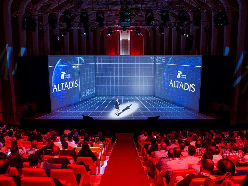 Altadis(阿达迪斯)是1999年由法国和西班牙的两家烟草公司合并而成的新公司,是欧洲重要的烟草制造商,也是全球第六大烟草制造商,特别是雪茄业务,更是全球排名第一。此次Altadis(阿达迪斯)的年度会议的一大特色就是屏幕的使用上,在科技发达的今天,竟然摒弃LED屏幕,使用起了传统的投影机,但整个现场的氛围也是很赞,不逊色LED大屏投放出来的效果。