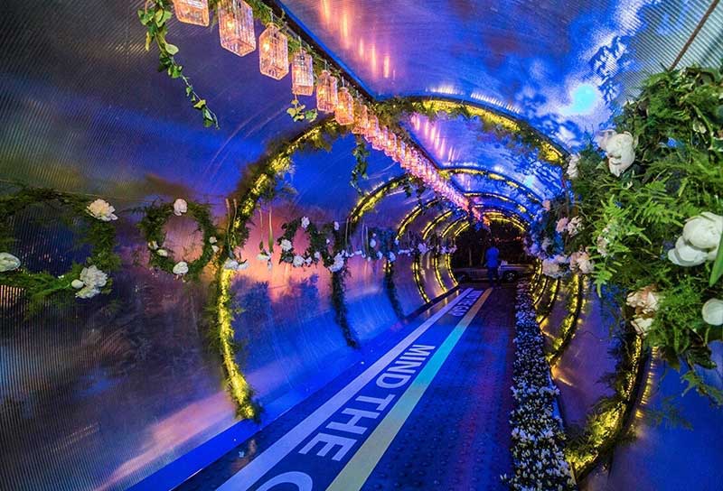 火车站主题活动是怎样的,你想过吗?深邃的隧道不再是黑暗无光,代替的是花花草草的诗意般的敞亮的隧道,走过隧道,径直来到活动现场,除了用梦幻和诗情画意,我想也找不到其它词来表达了,也是词穷了,就连甜甜圈都像画一般被展示在展架上,喜欢哪个直接取下即可食用。火车站主题活动怎么可能少了火车嘛,火车不就在现场摆着嘛。赶紧去现场感受一番吧。