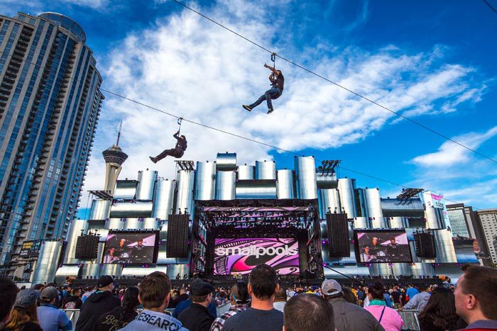 音乐节现场搭建了由科罗娜啤酒赞助的(Corona)的白色高塔,并创意性地搭建了一套高空索道系统,参加音乐节的游客可以从高台上飞下来俯瞰整个现场。高空索道在音乐节的第一天就达到了运行高峰,大概有2000人飞越了主舞台(索道比主舞台大约高65英尺)。