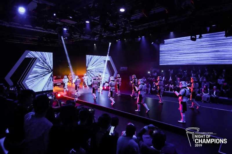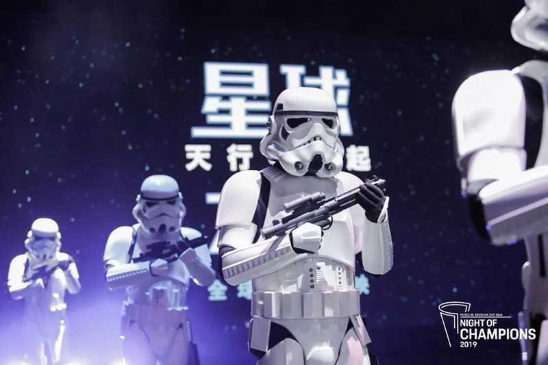 当晚的晚宴舞台灯光骤暗,一队暴风兵在星球大战经典背景音乐的节奏下突然出现,列队舞台两侧,与此同时,一台保时捷Taycan Turbo S缓缓驶出,保时捷旗下首款纯电动跑车极致简约的外观造型与暴风兵盔甲的设计感相得益彰,现场来宾无不惊叹连连。这一精心策划的舞台展示,也是为不久之后亮相的保时捷与卢卡斯影业(Lucasfilm Ltd.)合作设计的梦幻星际飞船埋下伏笔。