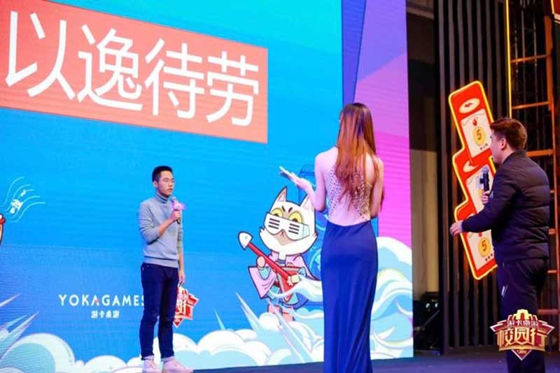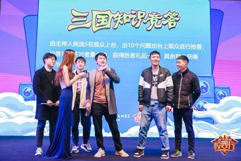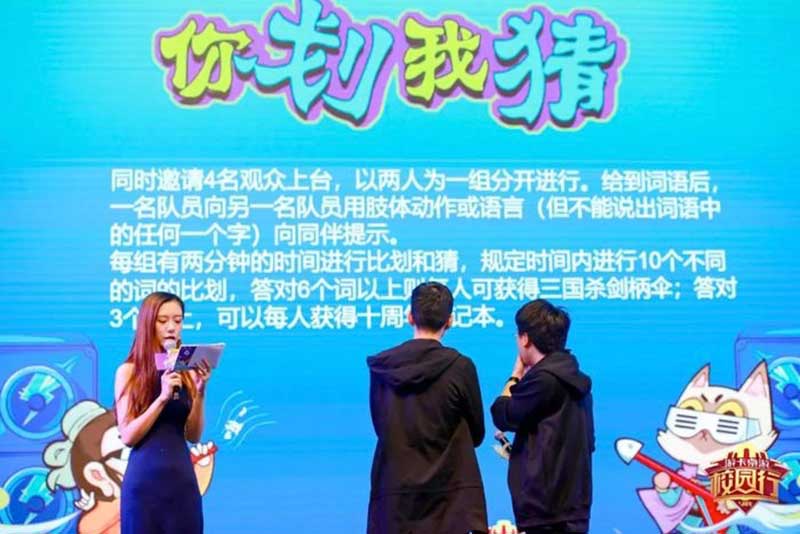 “游卡桌游校园行”的前身是“三国杀校园行”,很多玩家都是《三国杀》的忠实拥趸,其中不乏从小学就开始玩《三国杀》的小伙伴,一路坚持到了今天。庆典一开场,coser小姐姐们的亮相就惊艳了全场。而现场除了有好看的表演,当然是少不了的现场互动环节,答对了相关问题即可获奖,既博取了现场观众的眼球,又承包了大家的笑点。