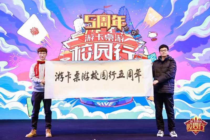 “游卡桌游校园行”迎来了5周岁庆典。来自全国各地的高校代表、社团代表和800多位高校学子齐聚杭州,在冬日点起熊熊热情焰火!五年,“游卡桌游校园行”把高校合作社团数量由9个发展到遍布30多个省市的400多个,推出了20多种的周边文创产品,组织了200多场大型活动,联合展开了10000多场高校活动。