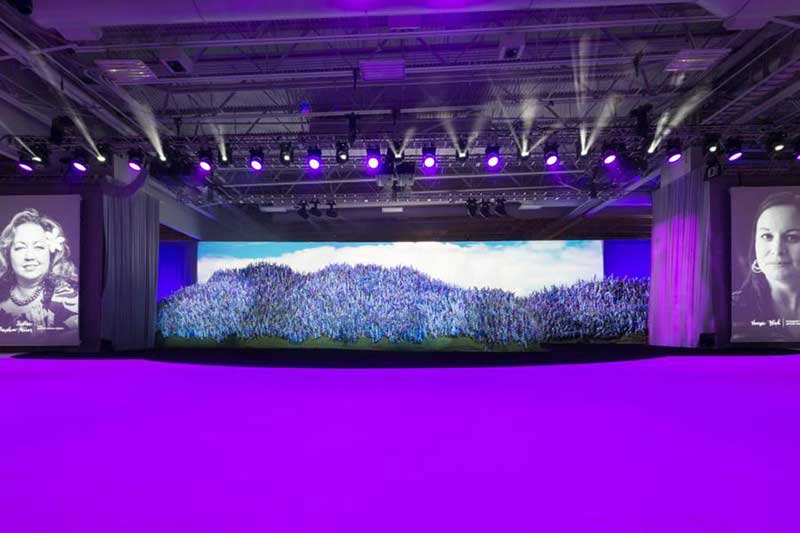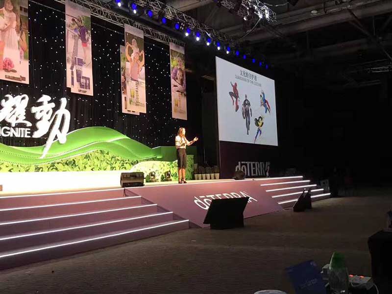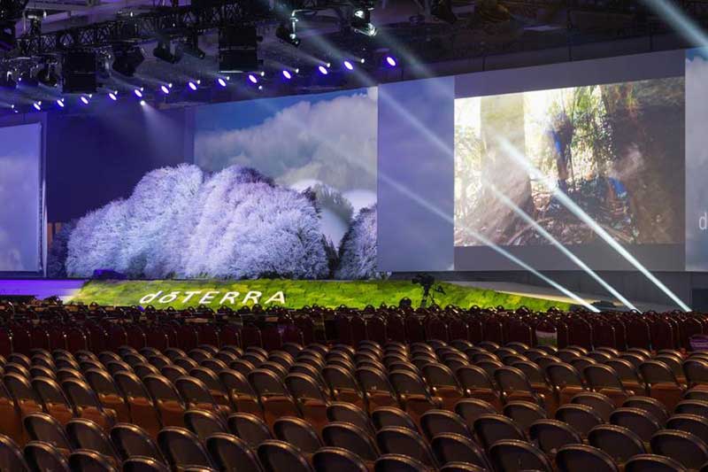 多特瑞一直专注于使他们的产品能够不断增长,就像植物一样不断的成长,为此,多特瑞全球大会就设计了一个花卉山景主题的舞台。多特瑞的年会吸引了24000名参会者,这意味着大会的舞台分为了两个,每个舞台都是独一无二的,一个舞台上是明亮的蓝色飞燕草,另一个舞台上则是迎风摇曳的薰衣草。
