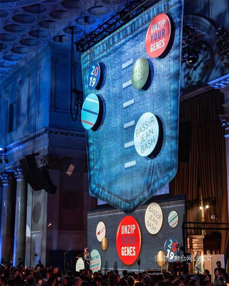 慈善晚宴的设计风格依然延续了往届的风格,以牛仔裤作为了活动主视觉,在现场还出售限量版的巴瑟中心手提袋,所有的收益将用于支持中心的研究活动。