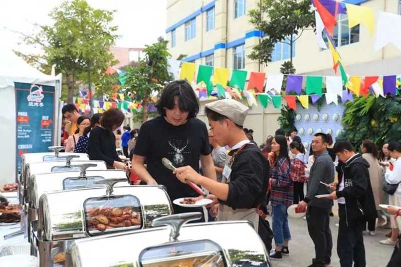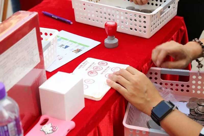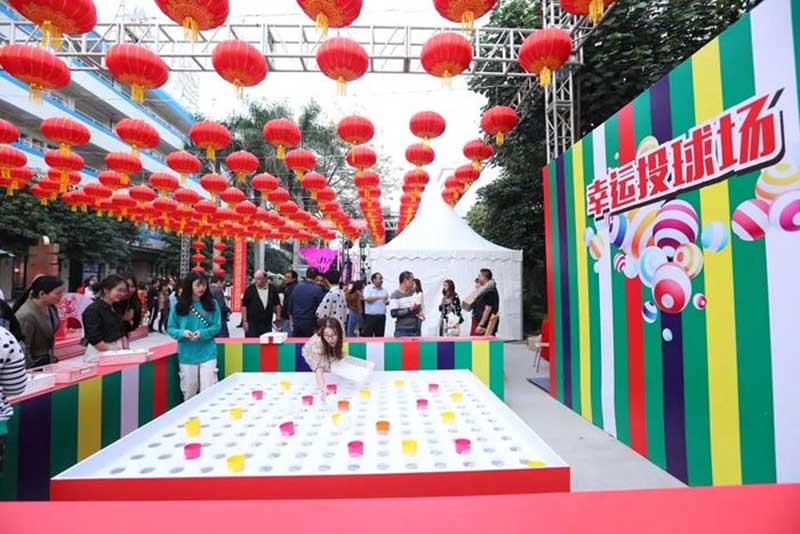 传统仪式环节金狮起舞以及为彩狮朱笔点睛,切全猪,注金沙活动在敲锣打鼓中拉开帷幕。来自世界各地的PPO家人相遇在签到区签名留影,logo是用七彩颜色的细线勾勒出HOPLUN品牌字样,每个人都会领取到一份嘉年华地图以及打卡本,所有的游戏和美食都可以凭借小本盖章领取,3大地域特色7个游戏点和十几种美食等你来体验。