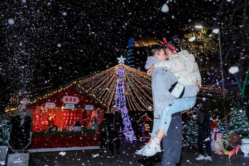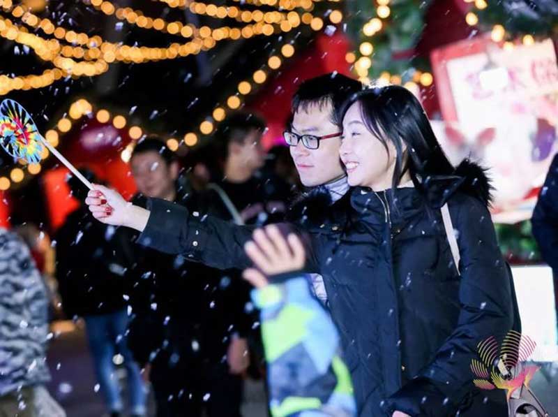 2019的魔都暖冬又是一个与雪花错过的日子,锦江乐园霸道总裁范儿:我来下雪!夜晚,华灯初上!锦江乐园摇身一变,为你营造一个雪白的童话世界,让你瞬间穿越到北欧冰雪王国,和最爱的那个TA,在大雪纷飞中一起“白头”,让爱邂逅在花花世界的浪漫乌托邦。