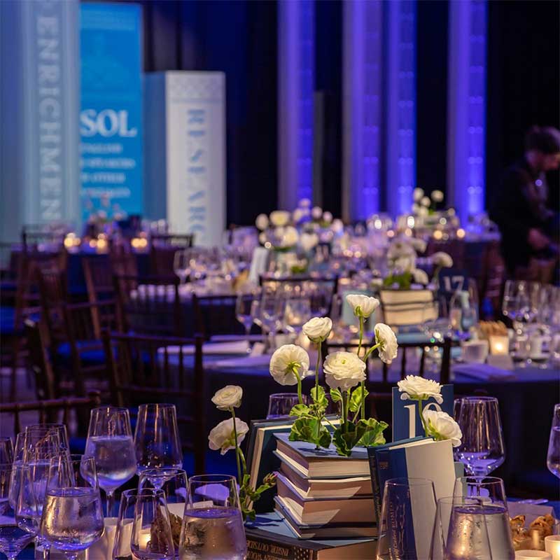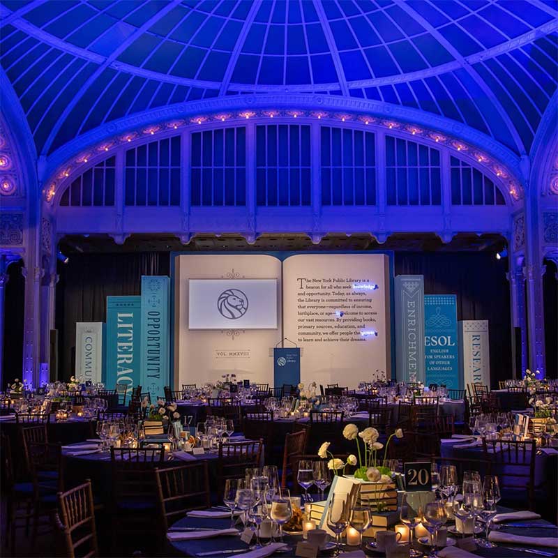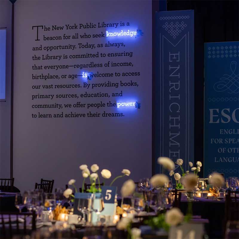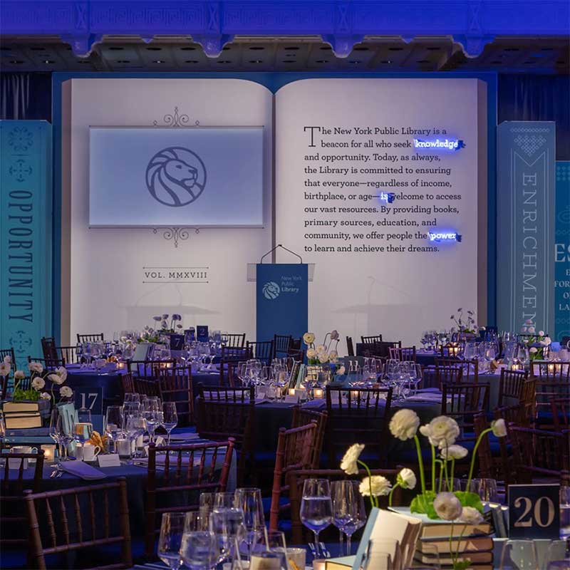 图书馆举办的晚会活动一般会是怎样的,估计也是非常传统、常规或者是简单的形式化一下吧。如果你是这样想就大错特错了,看看纽约这个图书馆的晚会活动策划的舞美,你绝对会惊叹的,一个以书为舞台元素的舞美设计凸显了图书馆的属性,其次还用霓虹灯管突出“知识就是力量”单词,更是强化了图书馆的知识层面的属性。闲话不说,一起去看看现场吧。