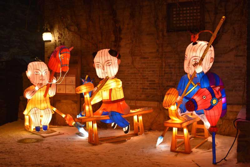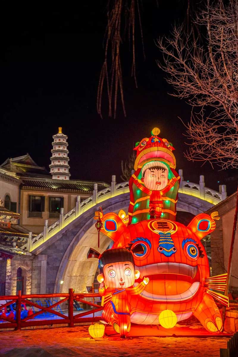 古北水镇还有更多好吃好玩的,除此以外“京味花灯”同样趣味十足,福鼠闹春、麒麟献瑞、天鹅送喜、心愿马车、风车龙凤门、十二行当,通通等着你们来一一解锁。