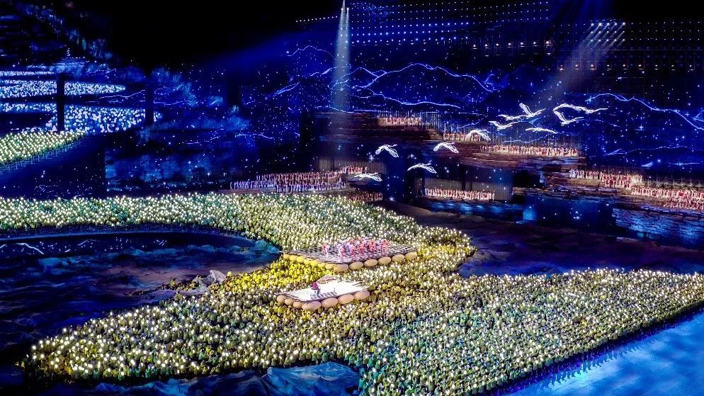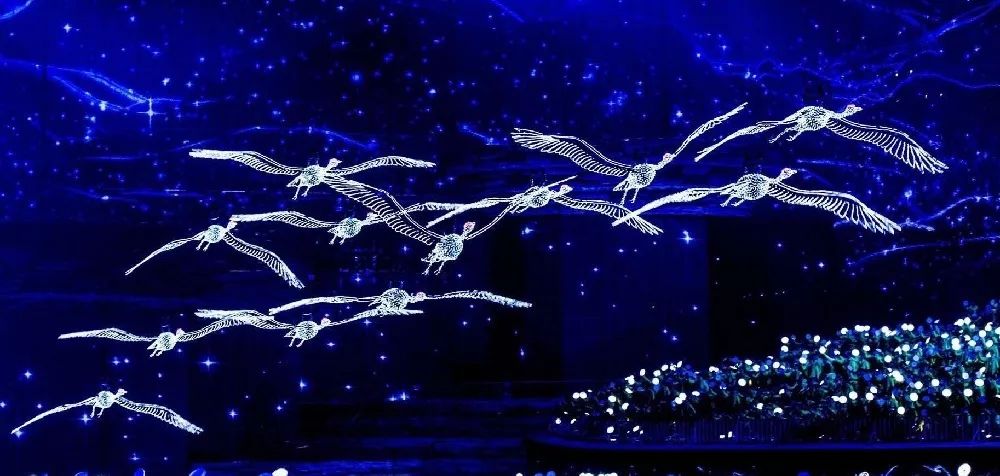 屏幕使舞台立体化,它不仅能在夜空中展现出千姿百态的色彩,而且能将幕后内容与灯光有机巧妙地结合起来,体现现代科技与文化艺术的奇妙结合。