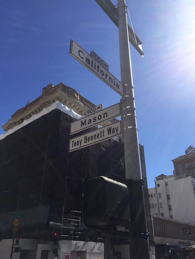 旧金山市为了向著名的歌手和旧金山大使托尼·贝内特致敬,为他举行了的其铜像揭幕仪式,并将梅森街900号街区的一部分正式改名托尼·贝内特路。