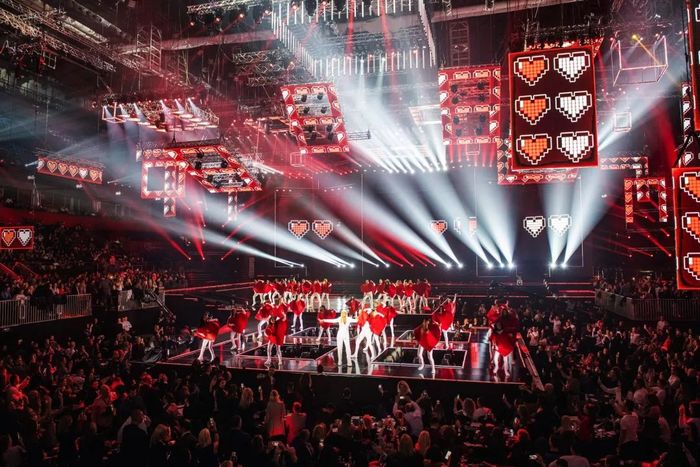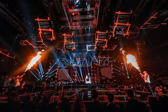 今年的舞台设计和表演相比往年更具创意和创新性。与其他颁奖典礼不同,MAC更像是一场晚会,整个舞台给人一种金属质感与碎片化,舞台分为三个区域,靠背景区域处为矩形舞台,中间区域为立方体舞台,靠观众区域则是一个田字舞台。每个区域顶部都设有不同的舞台机械。