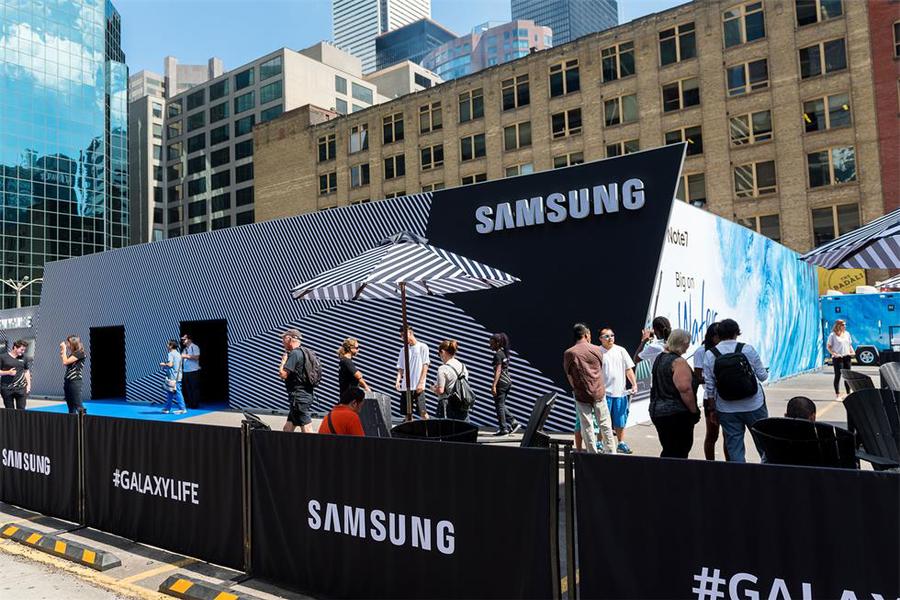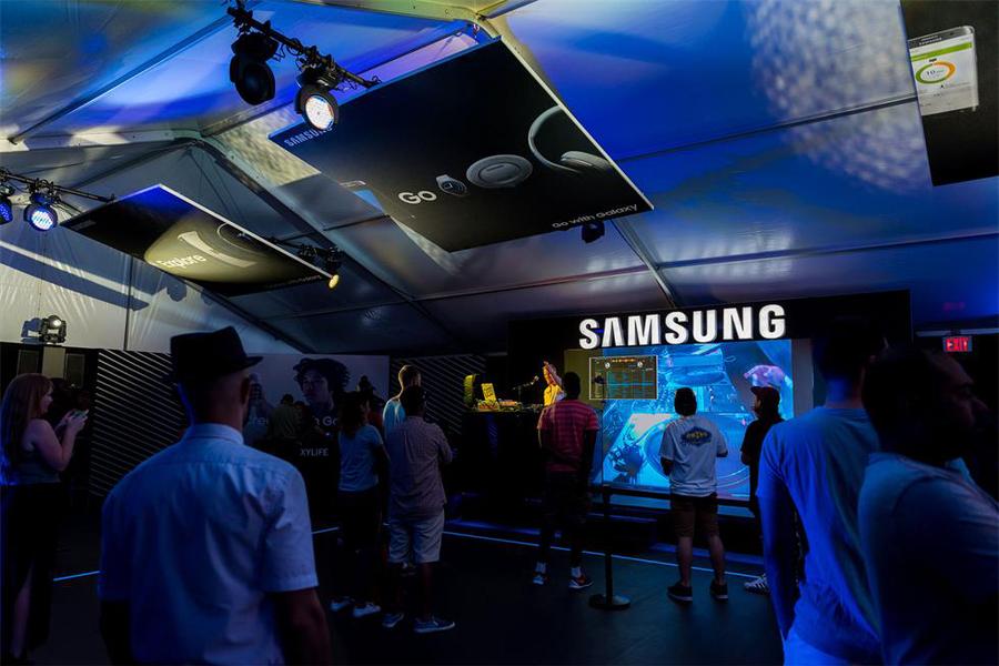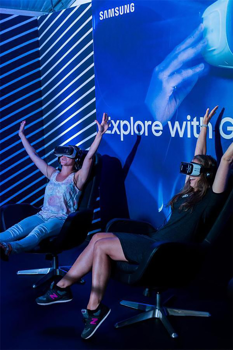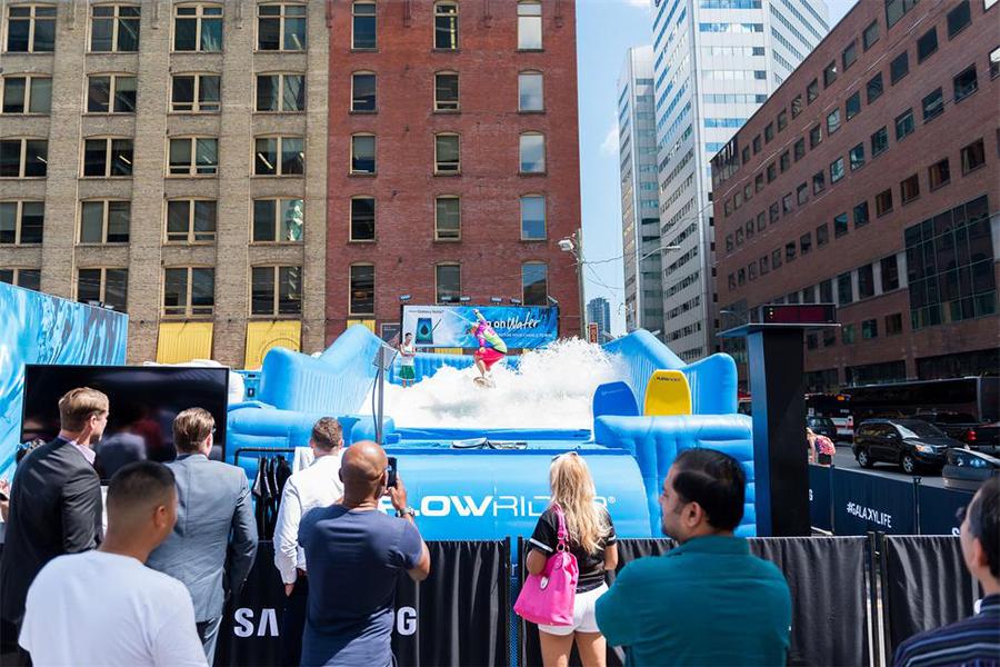 三星的#GalaxyLife展示了他们的产品是如何实现“连接生活”的,同时结合了一个户外“流动骑士”(冲浪池)来强调新旗舰手机的防水性能。在会场内,与会者试用了虚拟现实头盔、智能手表和手机新的低光摄像头。同时这里还举行了各种免费活动,比如瑜伽、音乐会、健身班和摄影拍照课程。