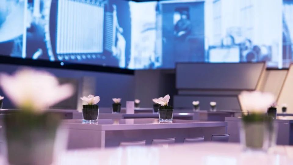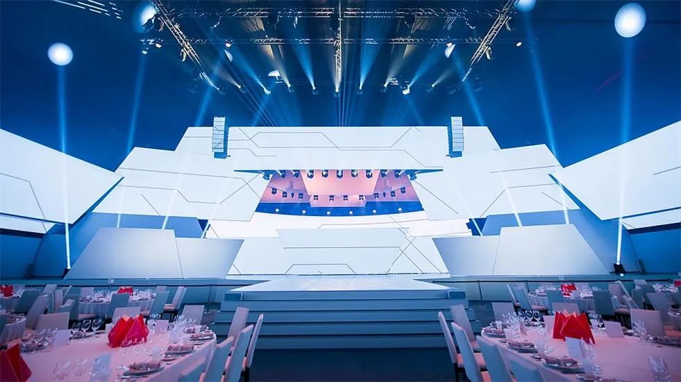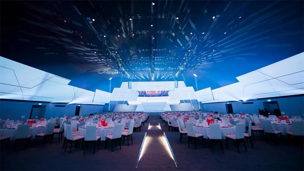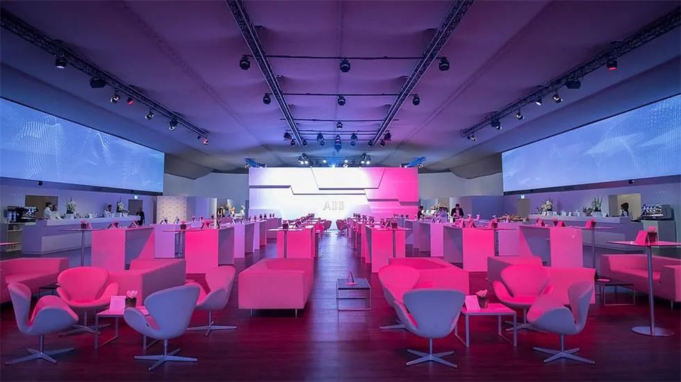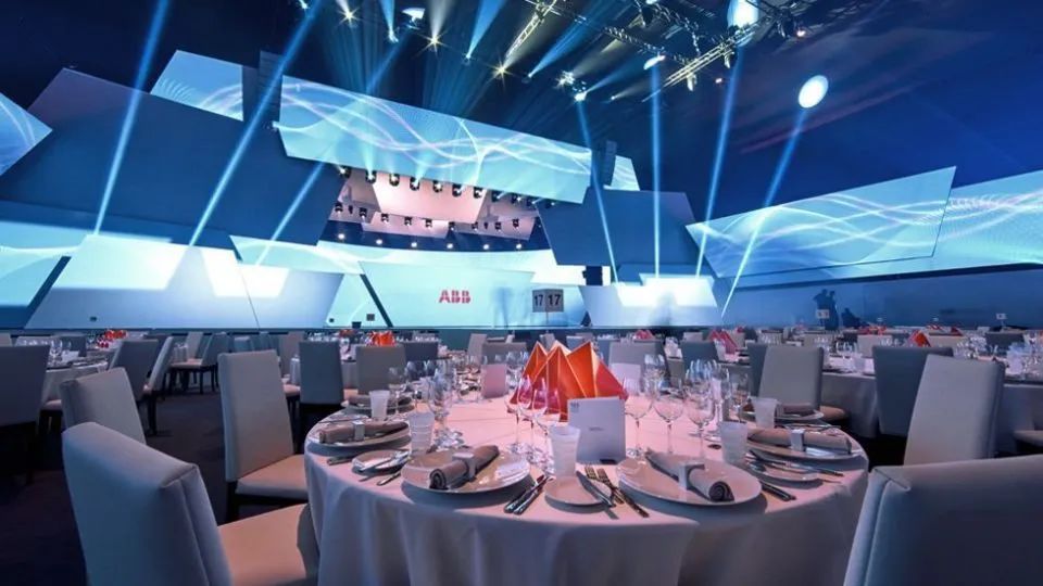 在主舞台所在的宴会区,举行了晚宴和节日,ABB展示了自己是一个充满活力,创新和开拓的公司。晚上一大亮点是从旧公司形象过渡到新公司形象的动画。