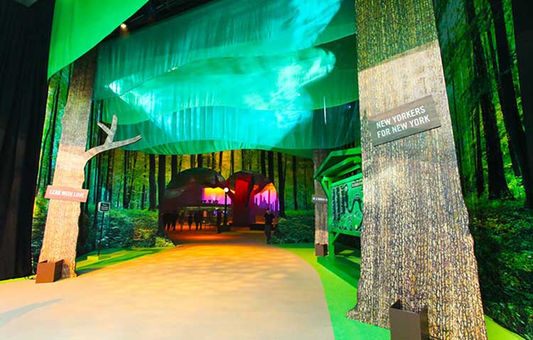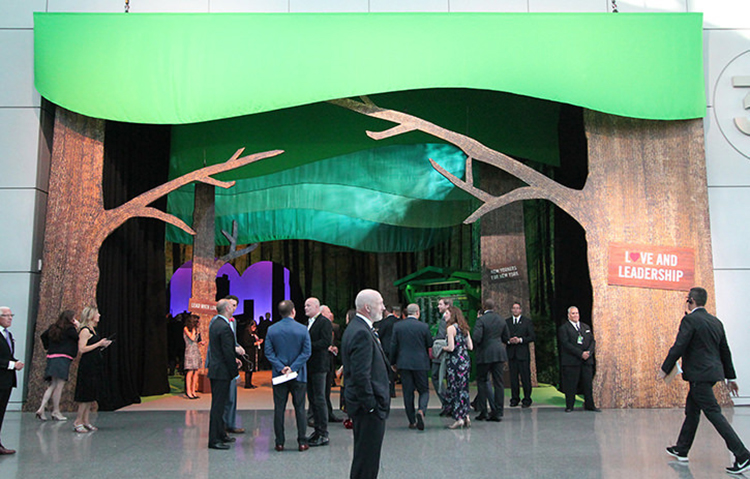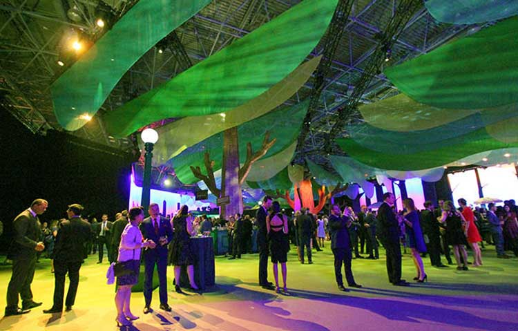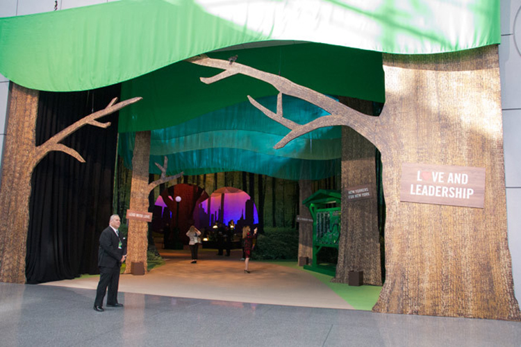 活动现场在鸡尾酒区创建了一个活泼的纽约城市公园,酒吧区和现场指示标志的设计灵感来自公园的建筑特色。虚构的树木上悬挂着绿色的织物材料的树冠,中央公园那些熟悉的地标像毕士大喷泉在现场作为布景被重建,莎莎舞演员们的表演和旱冰表演让现场更加的活跃,餐饮区包括经典的移动食品车,公园长凳成为了现场的休息座位。