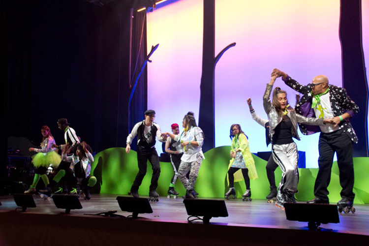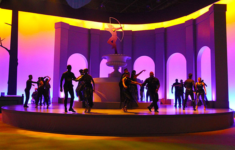 中央公园那些熟悉的地标像毕士大喷泉在现场作为布景被重建,莎莎舞演员们的表演和旱冰表演让现场更加的活跃。