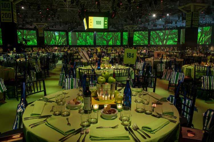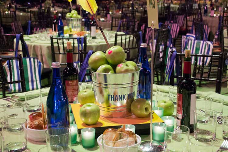 餐桌的中心装饰物被设计成了罗宾汉射苹果的故事,活动结束后,该组织计划将苹果捐赠给纽约食品施舍站,估计可以满足他们三个星期的需求。