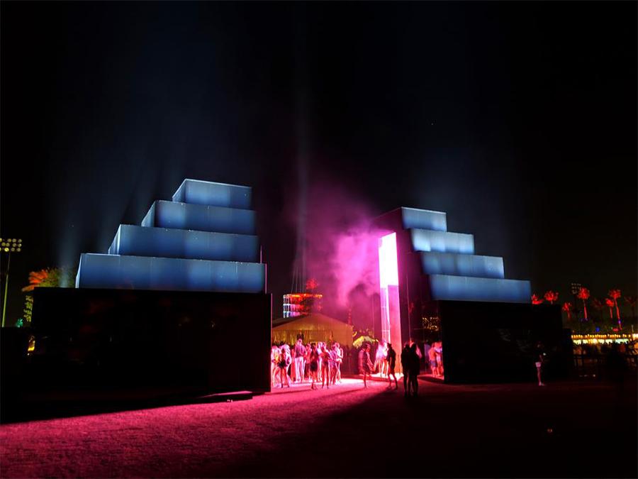 为了利用科切拉音乐节的超级人气推广Google的Pixel 3手机,活动策划设计了“黑暗中更明亮”的艺术装置来展示新手机的特点。Google在音乐节现场搭建了巨大的两座金字塔,分别放置了独立的艺术装置,供客人们体验。现场还邀请了著名的美国演员、编剧、歌手唐纳德·格洛沃进行现场表演。